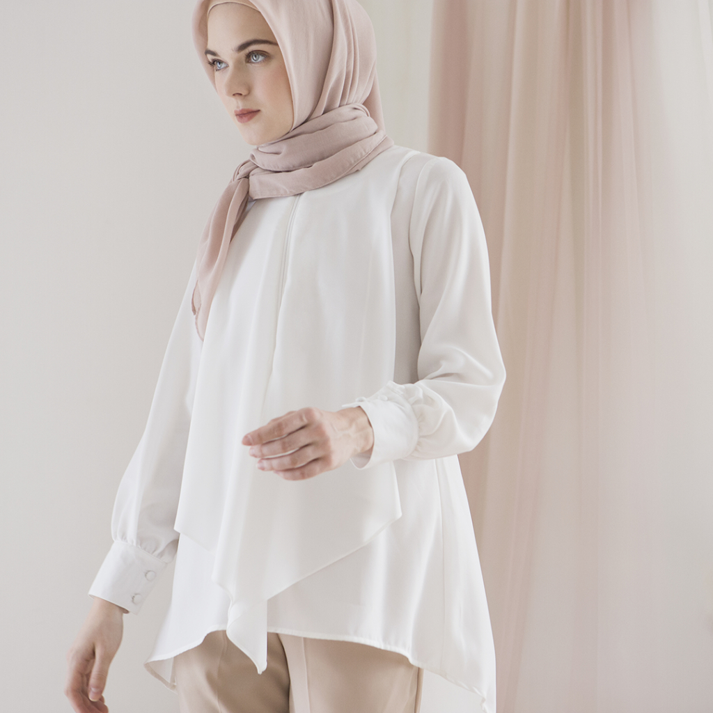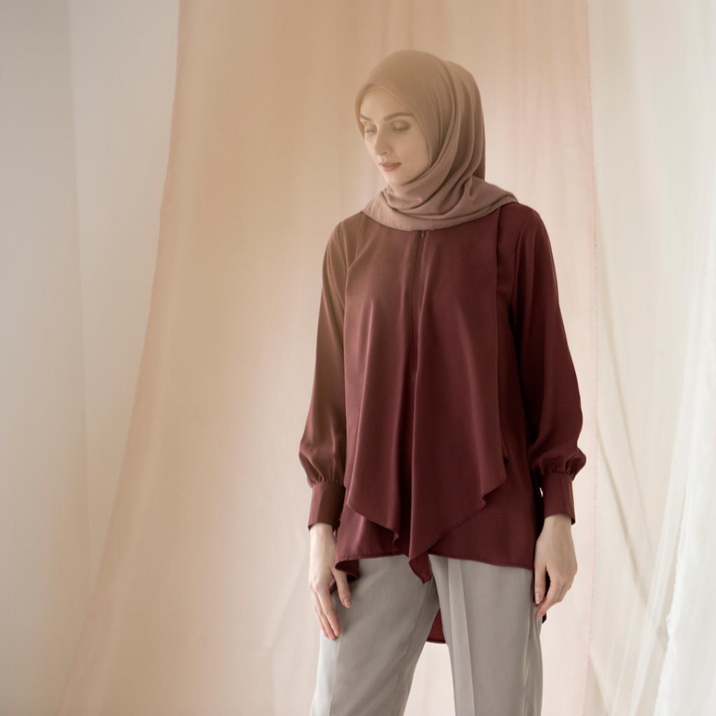 Dian By Aska Label - Atasan Kantor Basic Lengan Panjang Dan Busui Friendly Warna Putih (Berfuring), Burgundy, Sand, Mint