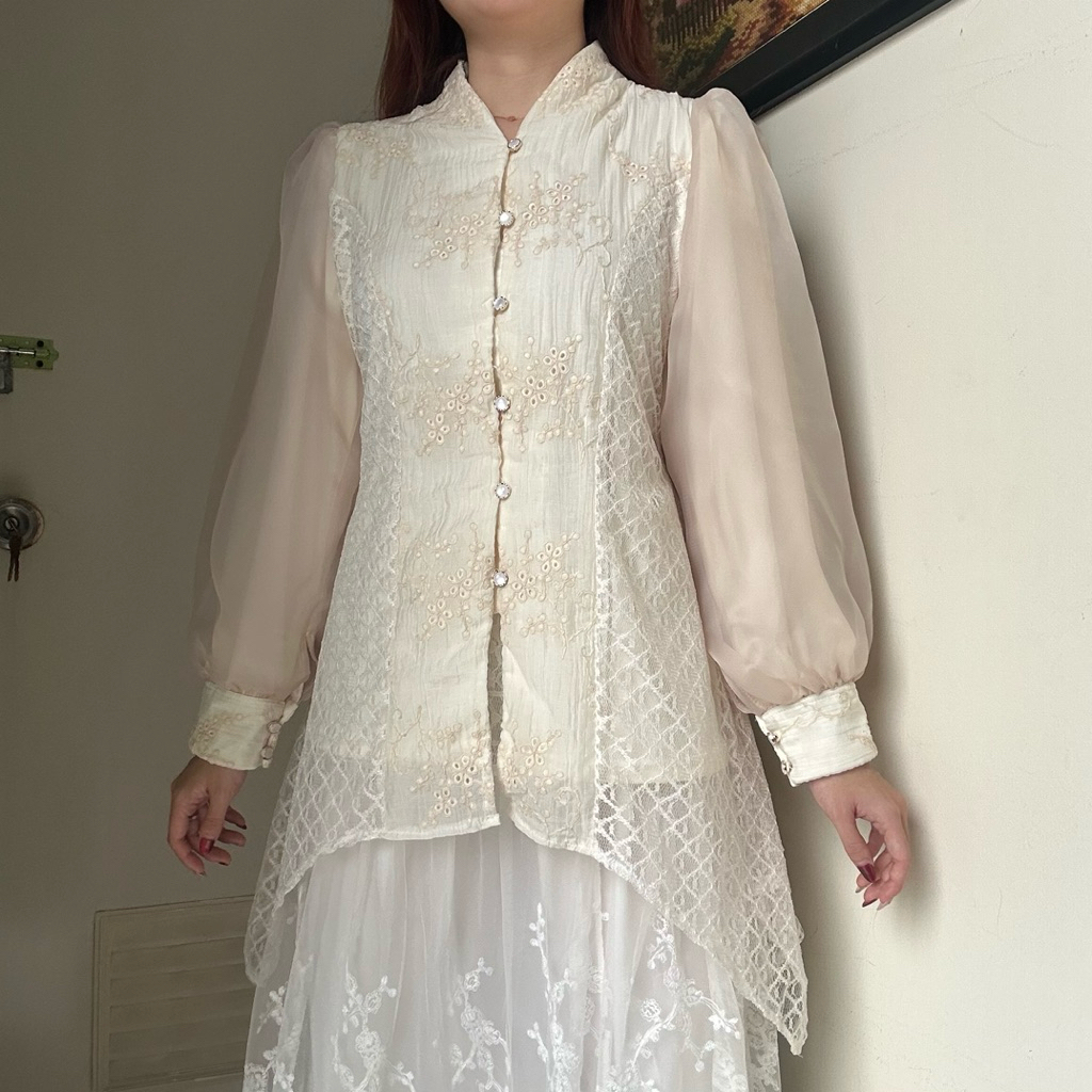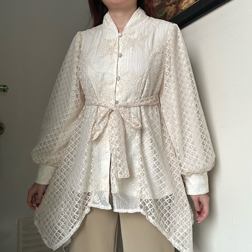 Diandra Top Atasan Blouse Semi Tunik Wanita Baju Viral Kondangan Kebaya Tensel Bordir By Biel The Label