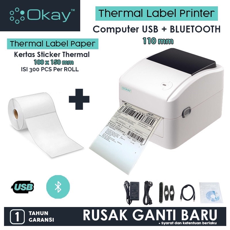 OKAY D100 BW BL Printer label pengiriman bare thermal Max Sticker A6 110mm Printer Resi