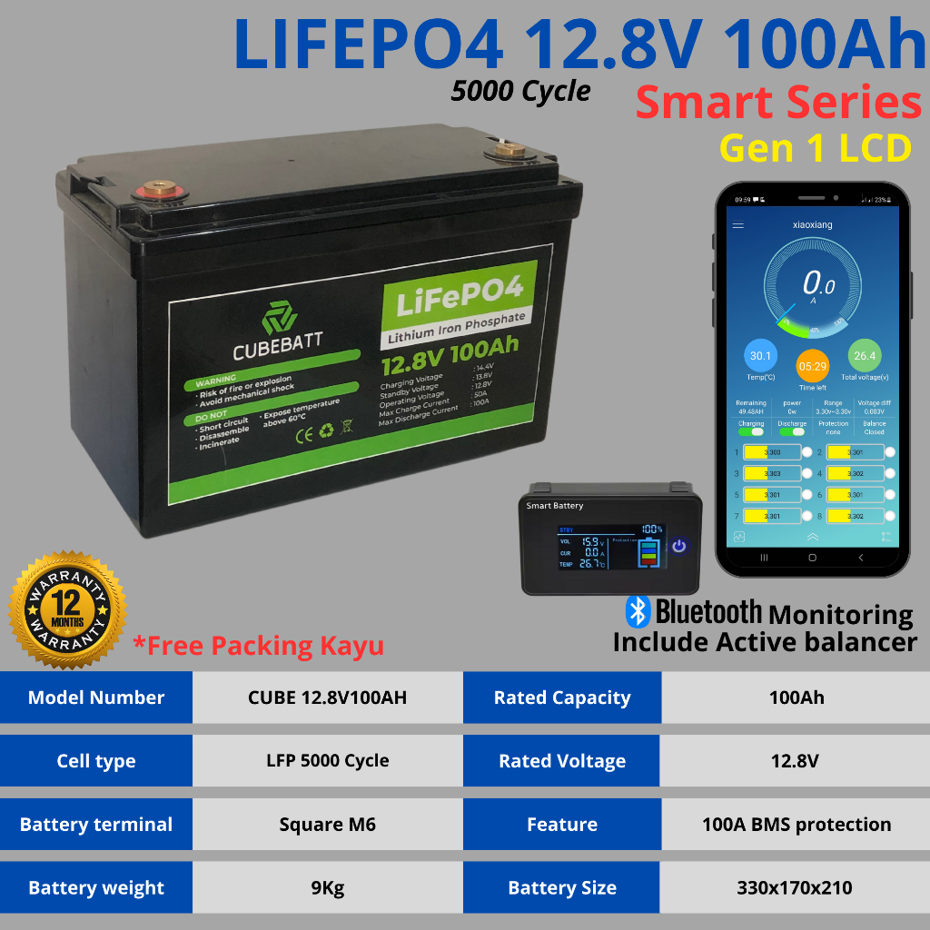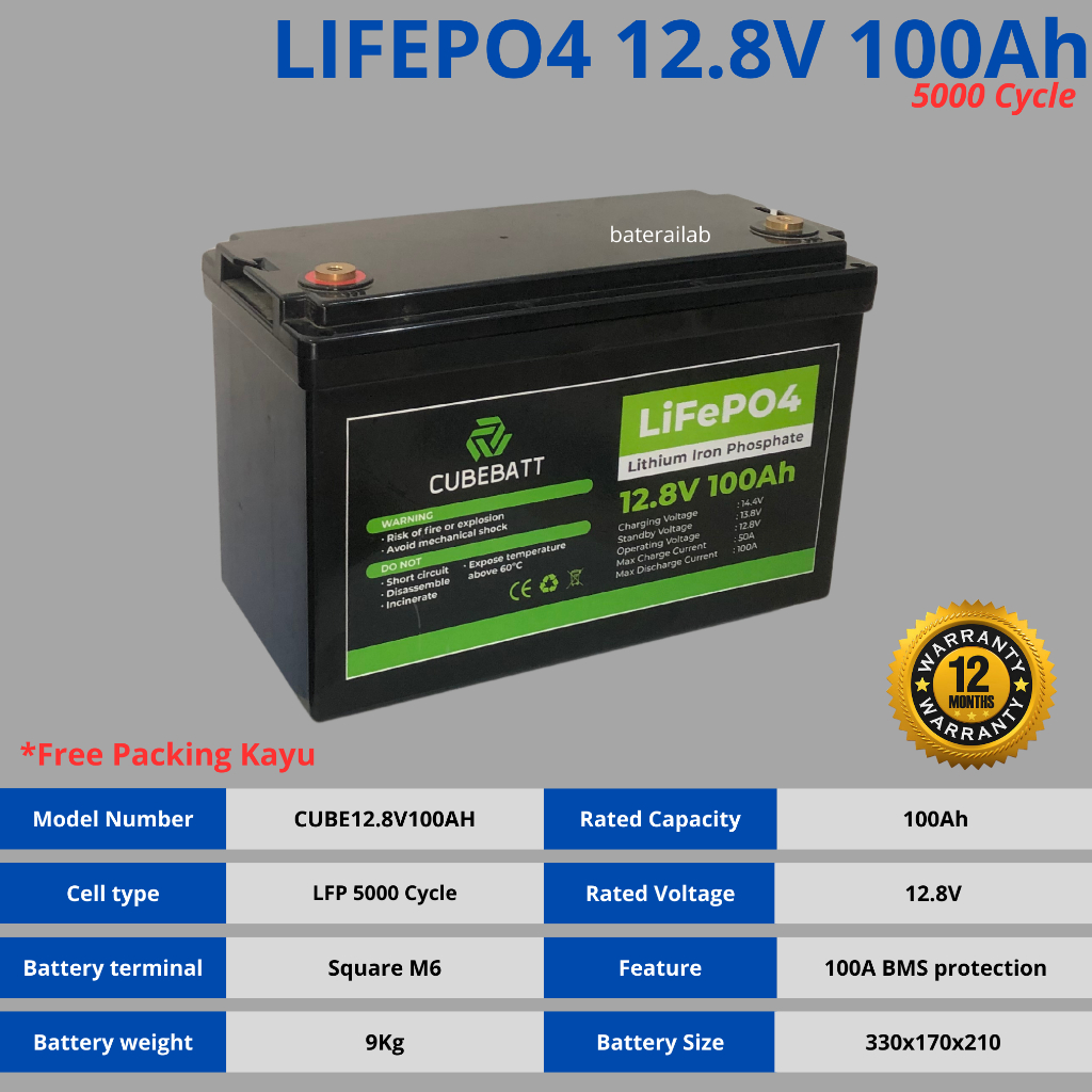 Baterai Lifepo4 12V 100Ah New 5000 Cycle Design Life 5-10 Tahun Untuk PLTS UPS Solar Panel Starlink