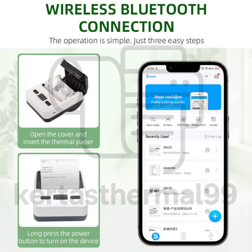 Printer Thermal 80MM Bluetooth + USB Cetak Resi Alamat Kasir Nota PPOB POS Bare Support Kertas
