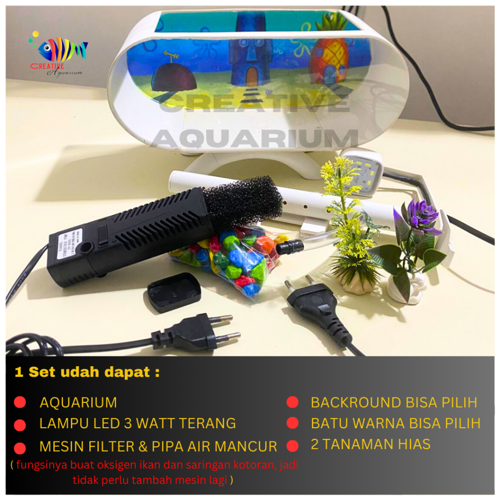 1 SET AQUARIUM AKRILIK CUPANG MINI PLUS MESIN AERATOR AIR MANCUR DAN LAMPU LED AQUARIUM BB002