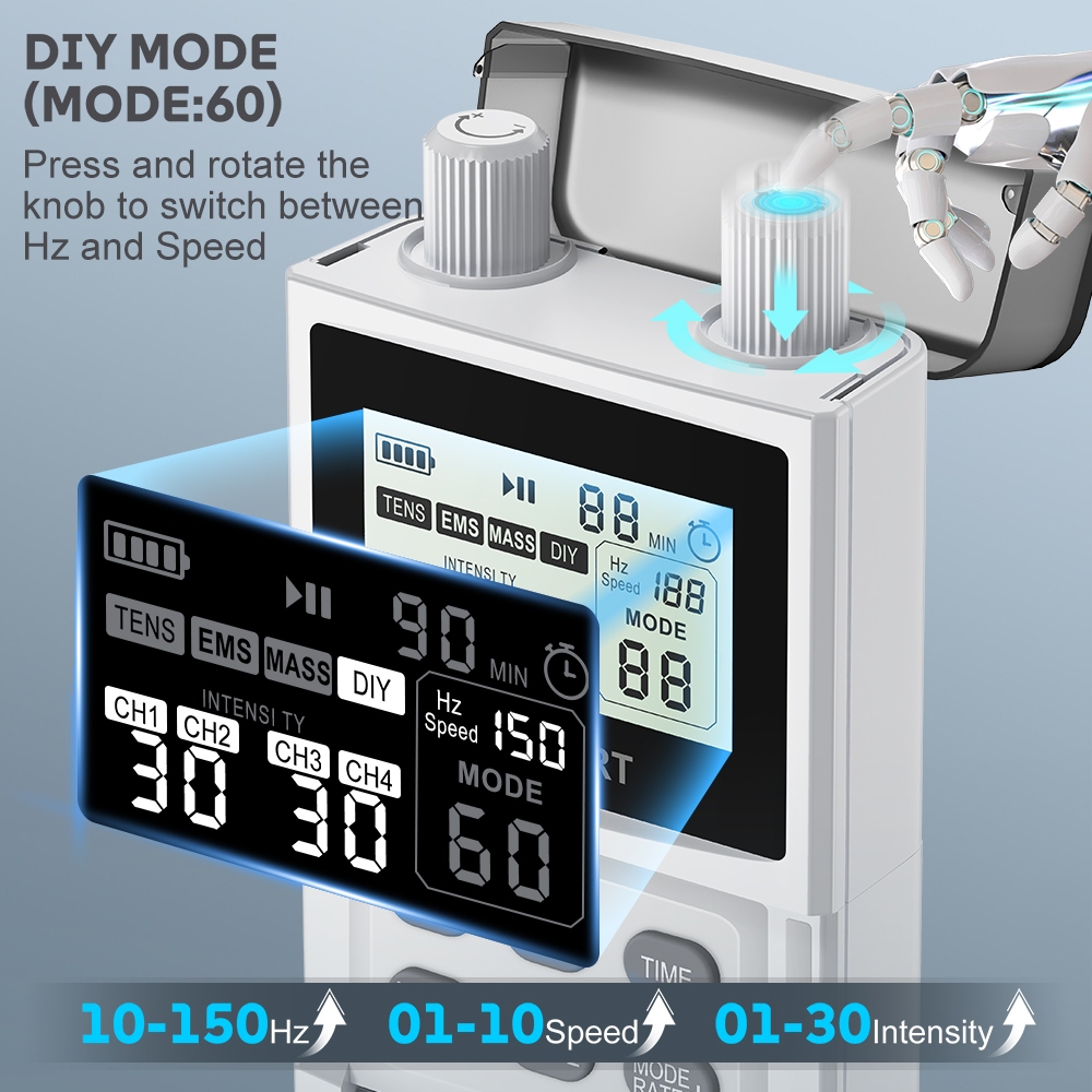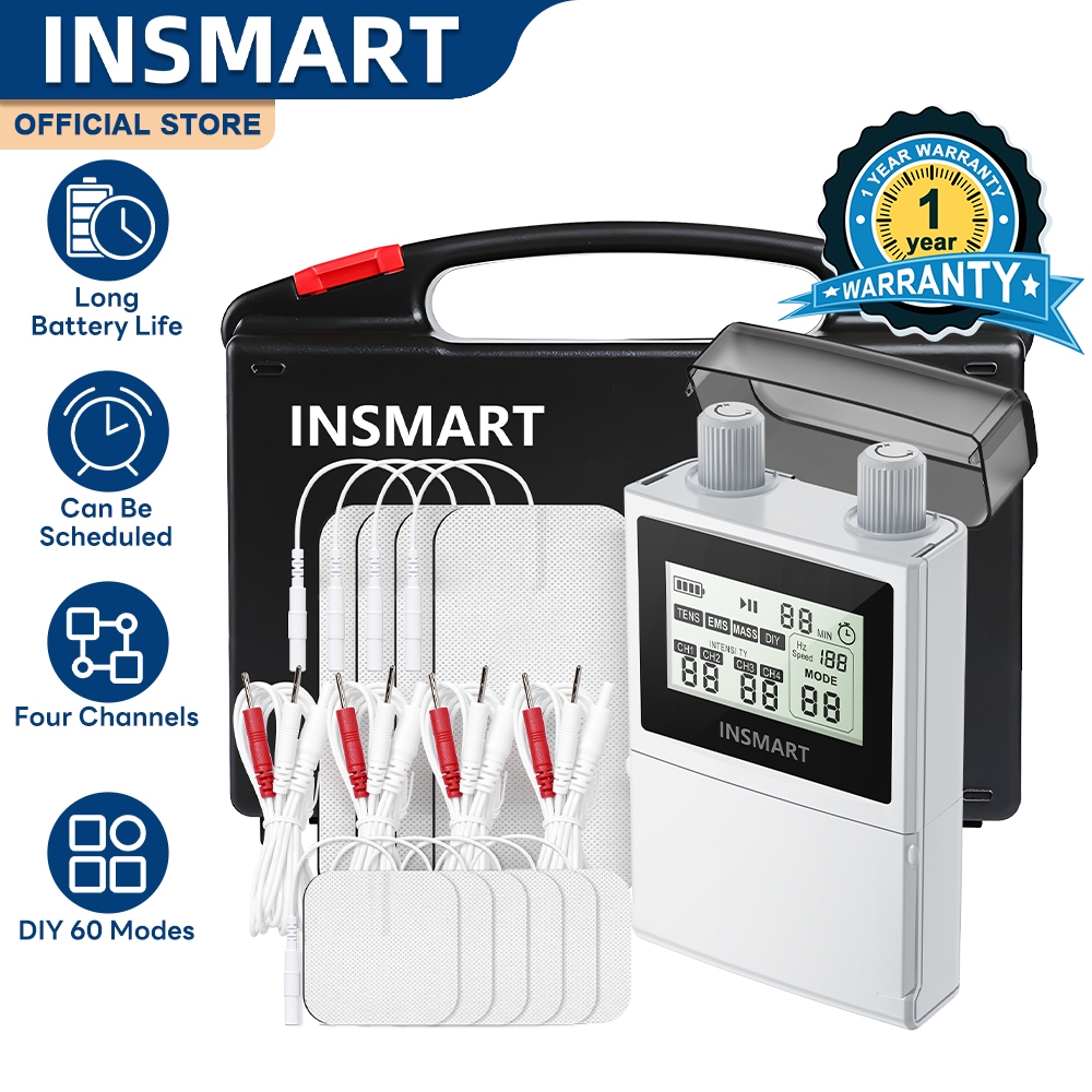 INSMART Alat Terapi Denyut Frekuensi Rendah TENS Dengan 4 Mode Massage Dan 4 Instrumen Meridian EMS Dengan Intensitas 80 Level