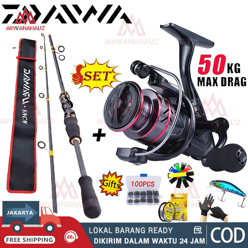 DAIWA Fishing Rod Set 1.6-2.4M 50kg Joran Pancing 1 Set Fishing Rod Reel Set Pantai Jigging Rod / Joran Pancing fishing reel 1 set alat pancing pancing reel joran pancing reel Set