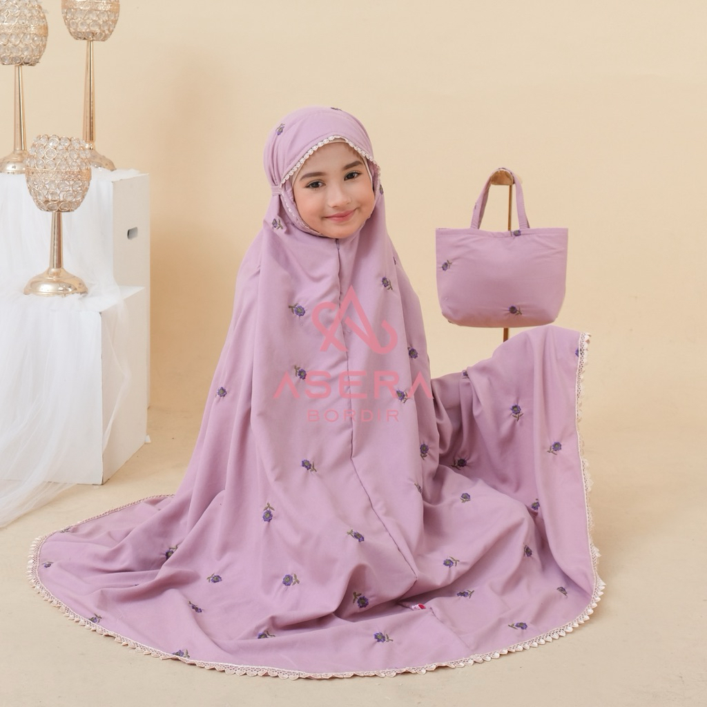 Asera - Mukena Bordir Anak Inayah Series 2In1 Katun Premium Usia 8-12 Tahun