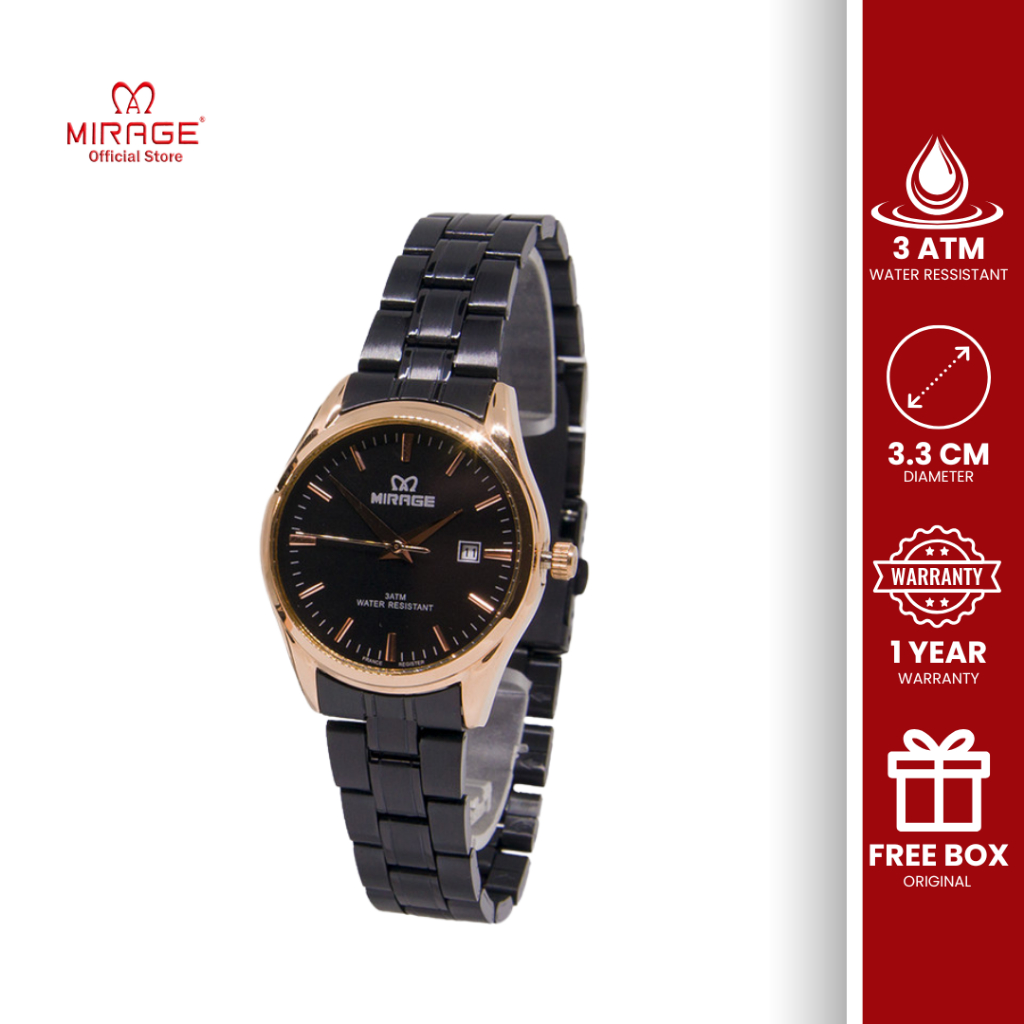 Mirage Jam Tangan Couple Pasangan 8708 Analog Stainless Steel Hitam Rose Elegant Formal Original