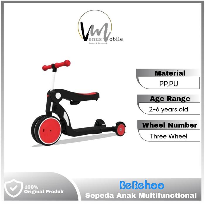 Bebehoo 5-In-1 Sepeda Anak Multifungsi Roda 2 & 3 Balance Bike & Skuter 5 Mode - Merah, Sepeda Only