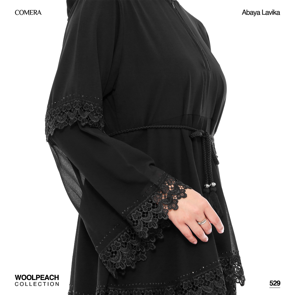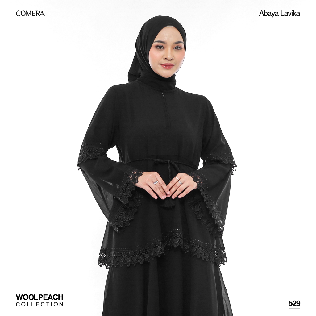 Comera - Abaya Lavika Gamis Turkey Maxi Hitam Renda Ceruty Wolfis Dress Lebaran Pengajian Umroh 529