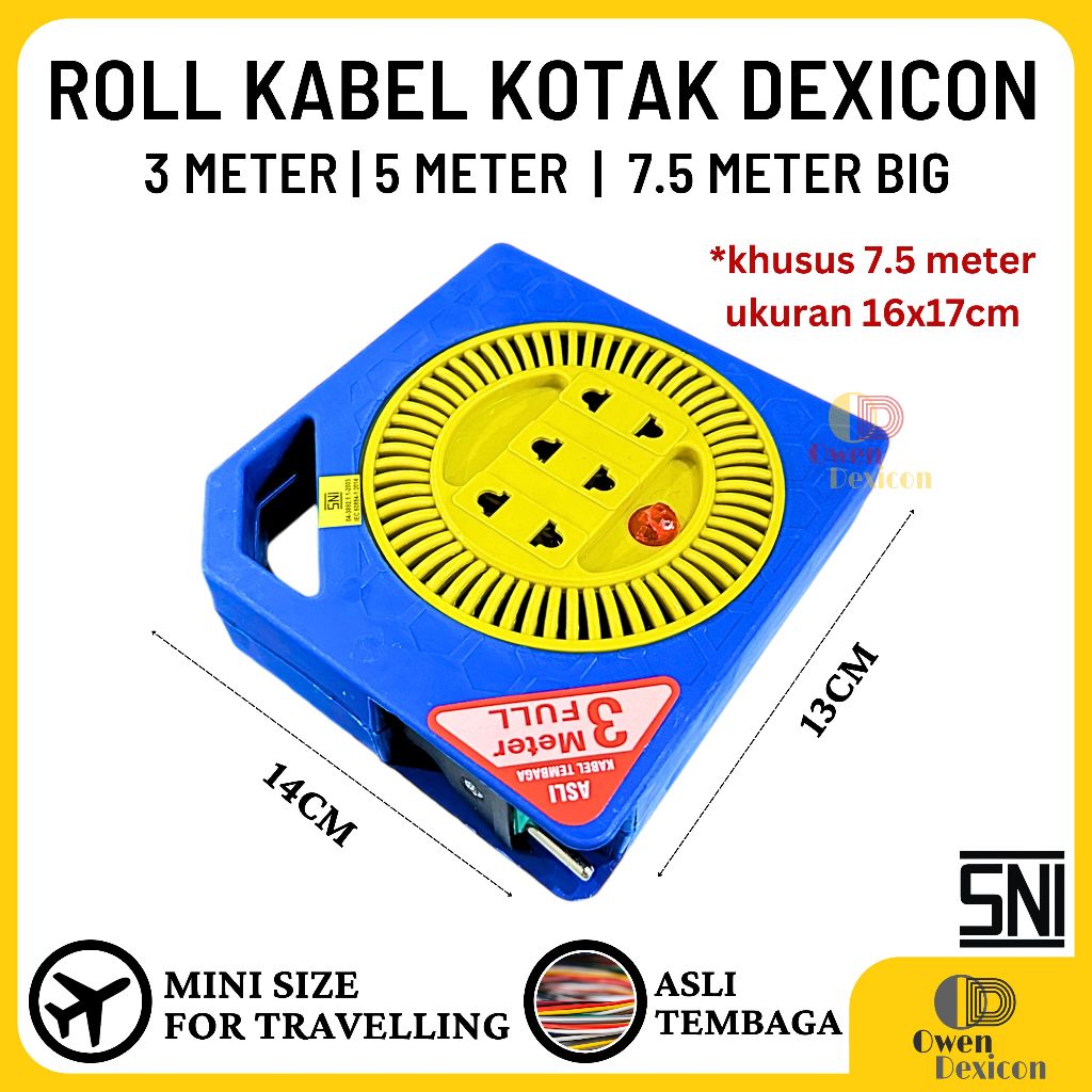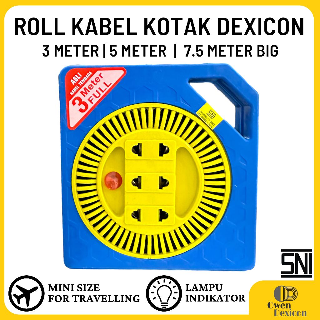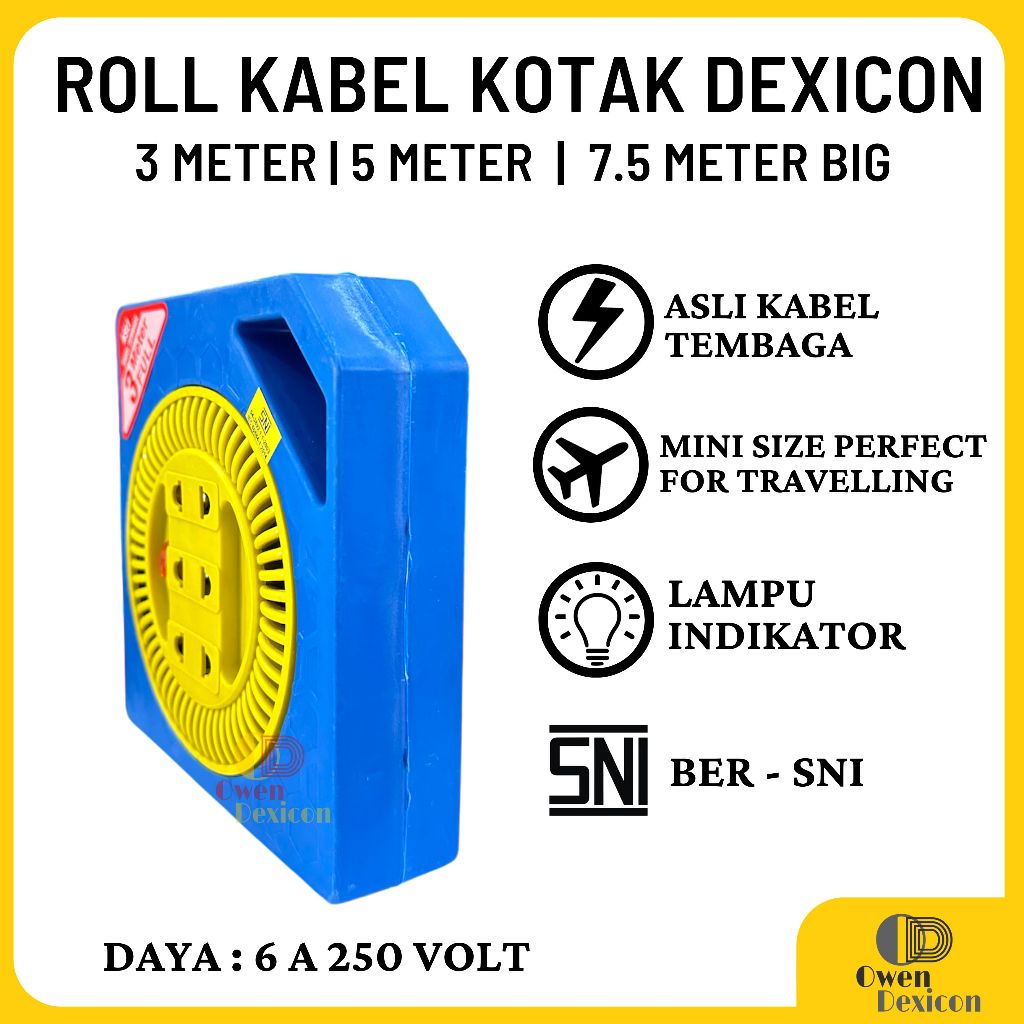 Roll Kabel Stop Kontak Kabel 3 M 5 M 7.5 M Box Kabel Colokan Listrik Kabel Gulung Kabel Olor DEXICON