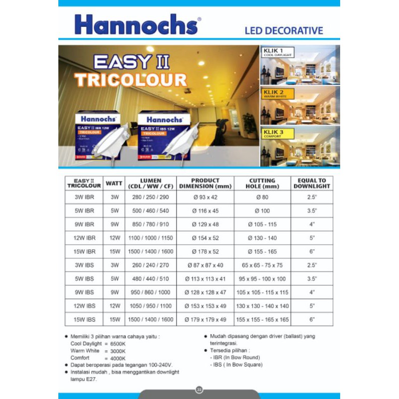 Lampu Downlight LED EASY II Bulat 3w/ 5w/ 9w/ 12w/ 15w Tricolour Hannochs