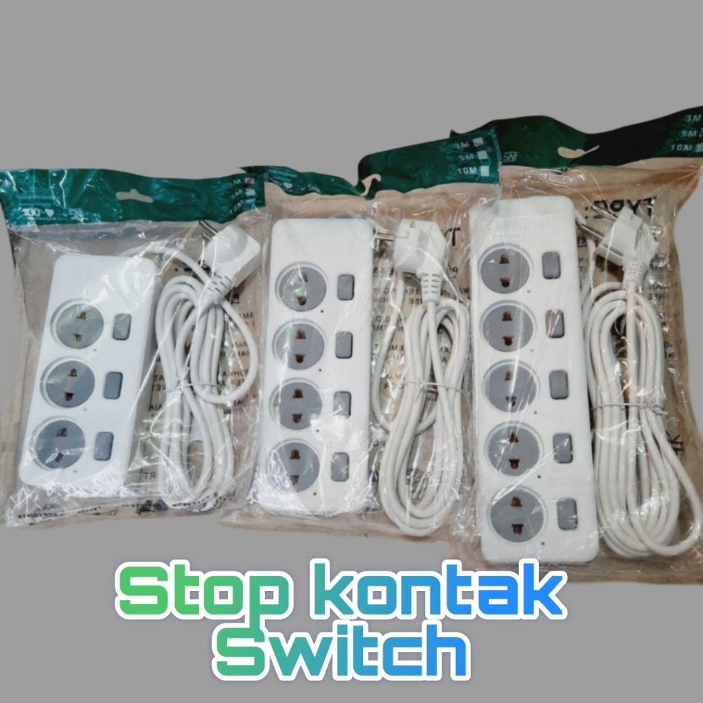 Stop kontak jadi + Switch (Setiap lubang) panjang kabel 3m / 5m / 10m / Mikotek kabel roll