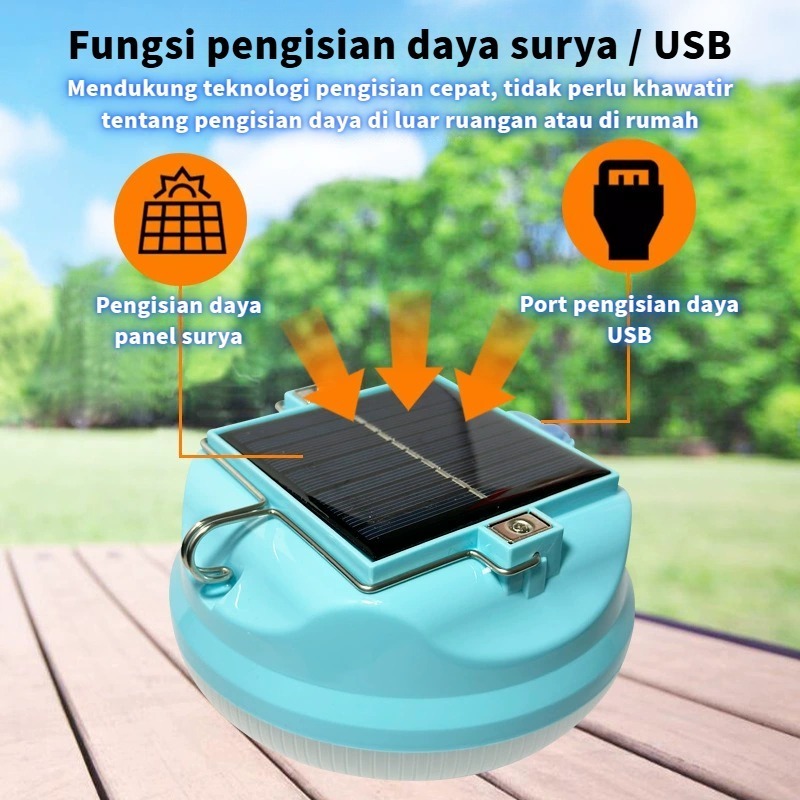 [Beli 1 Gratis 1] 600W Lampu Tenaga Surya & Lampu Camping LED - Portabel, IP67 Tahan Air, USB, Multi-fungsi, Lampu Emergency, Tahan Lama
