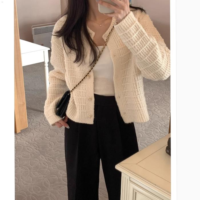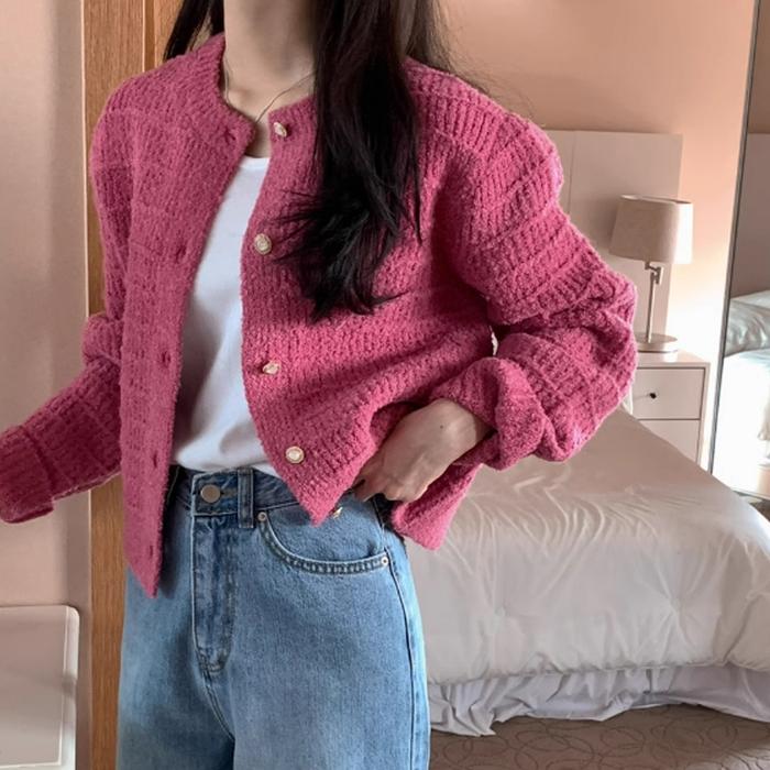 Korean Style Cardigan Pink Lengan Panjang Kekinian Premium V-Neck Outerwear Jacket Wanita Terbaru Outer Knit - Pink, Sat