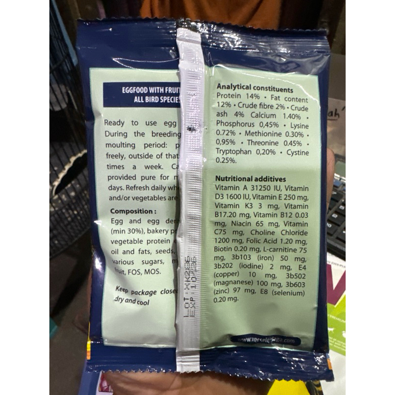 Pakan Burung FRUTTI PATEE VERSELE LAGA extra fooding pakan burung kenari, finch, gould amadine