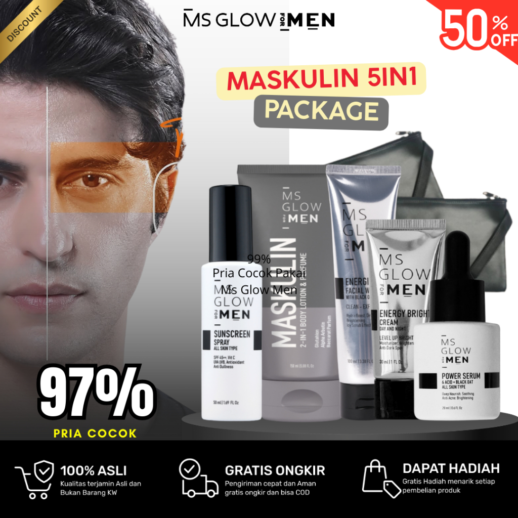 Paket Ms Glow For Men 5in1 Paket Basic Sunscreen Lotion Maskulin Skincare Ms Glow Men Official