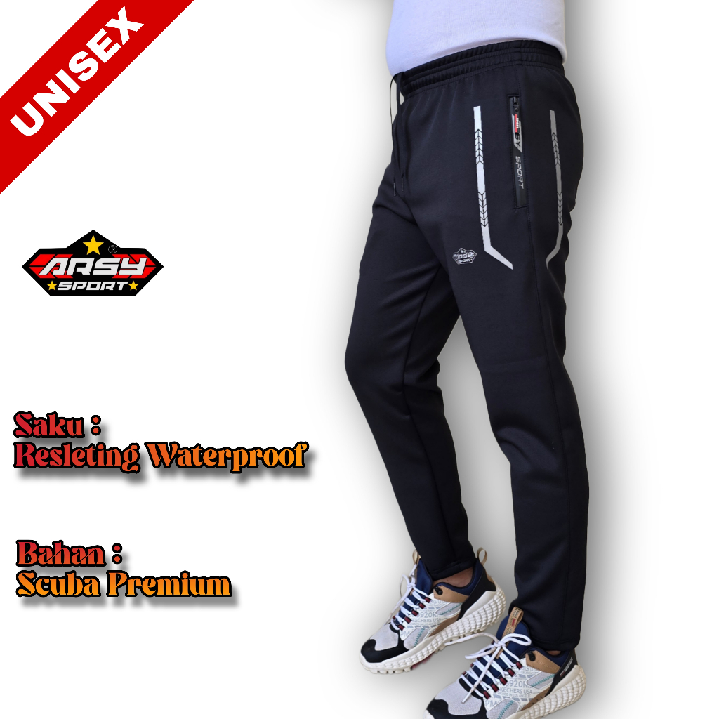 Arsy Srt - Celana Running Pria Wanita - Celana Training Panjang Bahan Scuba Elastis Cuttingan Slimfit - TRS-001