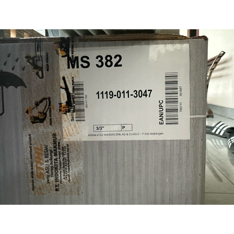 Mesin Chainsaw / Senso Asli STIHL MS 382 Komplit Dengan Bar 25 Inch /63 Cm Rantai 42 Mata