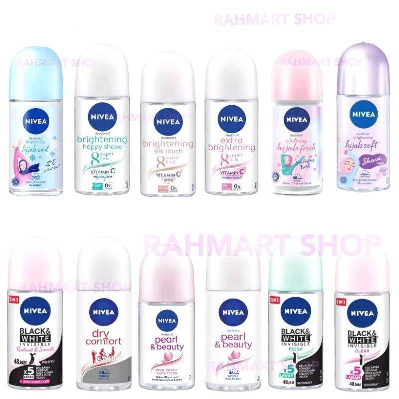 NIVEA Deodorant Roll On Women 50ml - Brightening - Hijab Fresh - Black & White - Pearl & Beauty - Dry Comfort 50ML