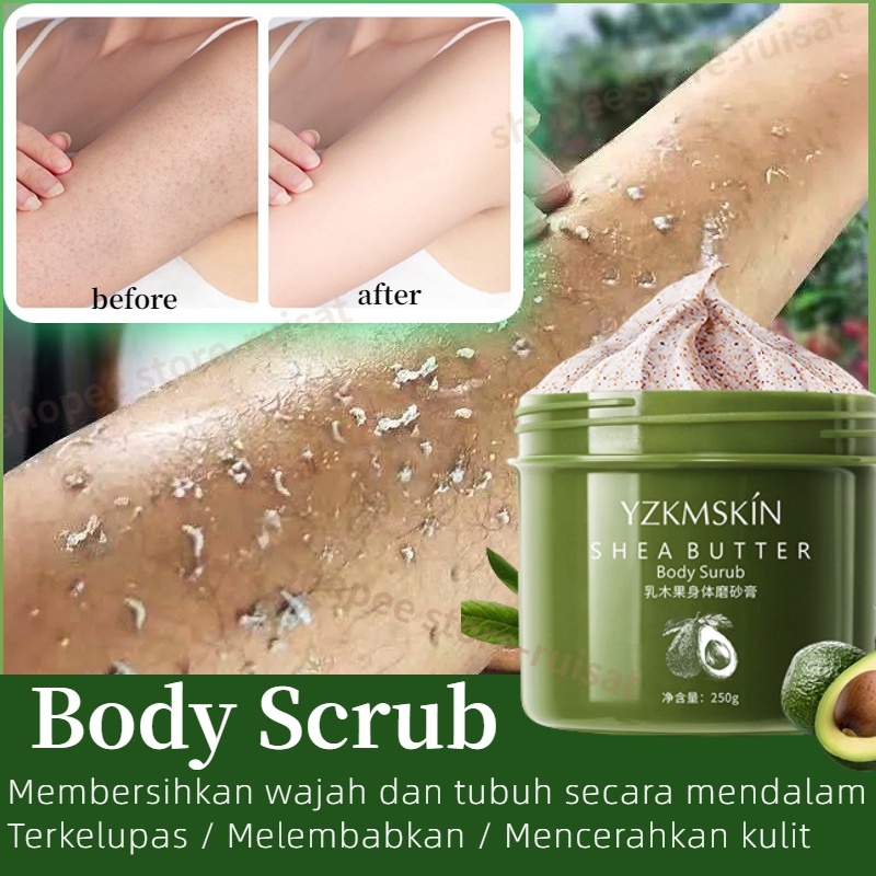 Lulur pemutih badan Scrub wajah 250g Scrub badan Peeling Kulit Ayam Exfoliating Whitening Shea