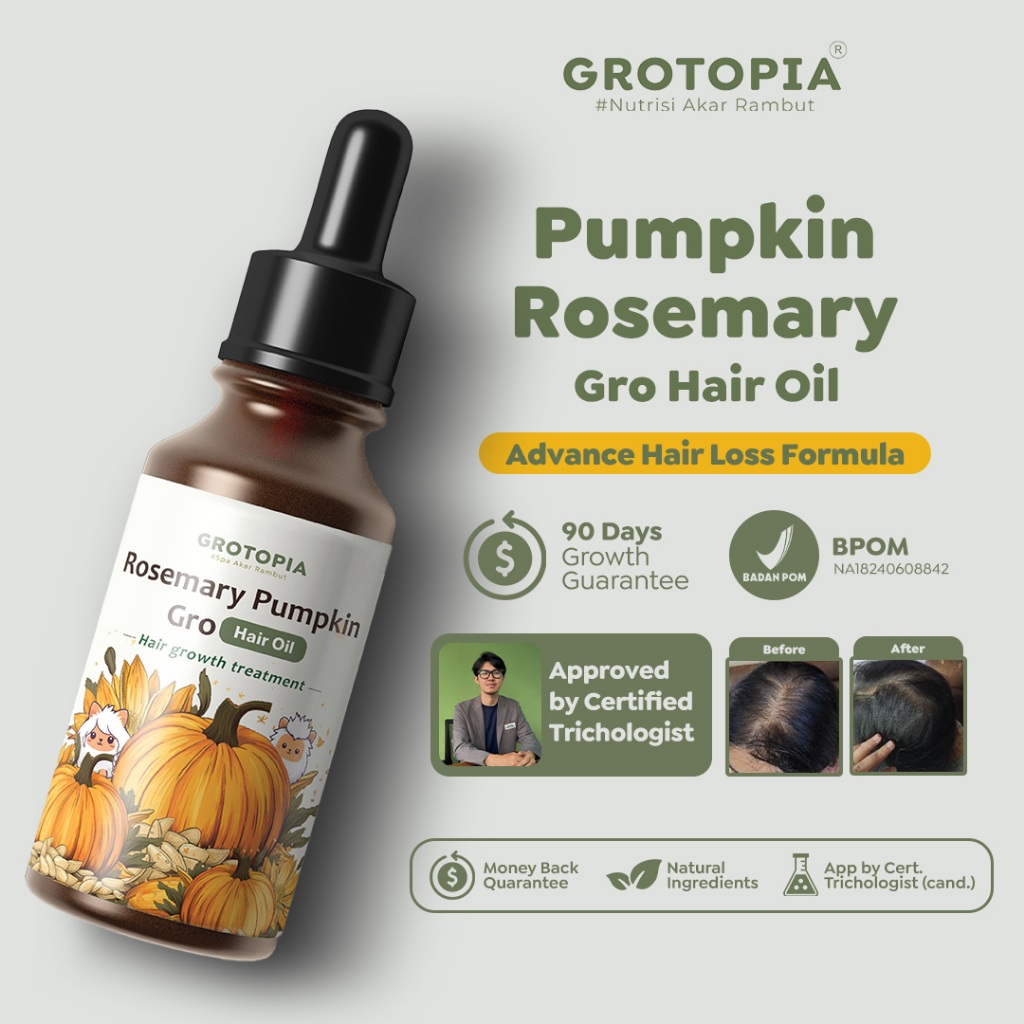 Grotopia Rosemary Pumpkin Seed Gro Hair Oil 60Ml Natural Akar Rambut Growth Anti Rontok
