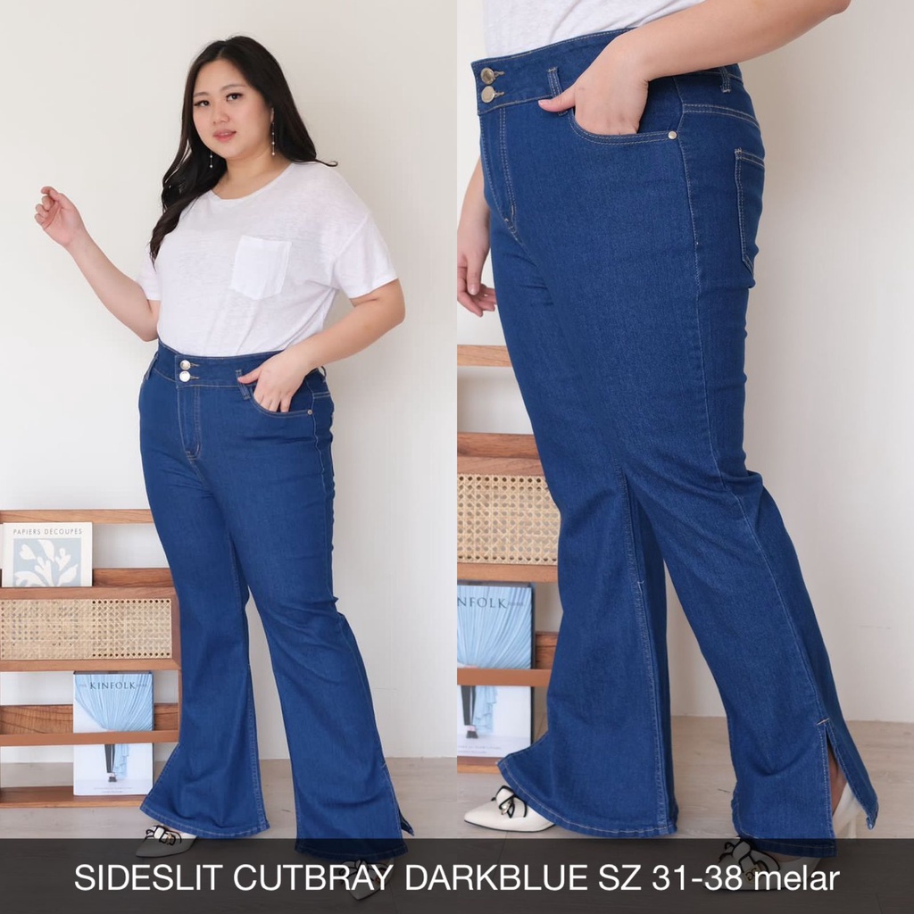 CELANA JEANS BIGSIZE WANITA SIDESLIT CUTBRAY DARKBLUE-SYS CLOTHIER