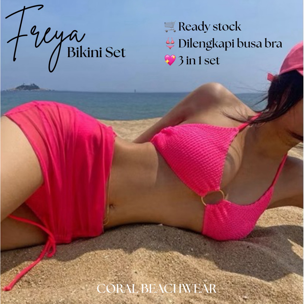 [Coral] Freya Bikini Set 3 Pcs Blue Pink Black 7096 | Baju Renang Wanita Baju Pantai Beachwear Swimwear