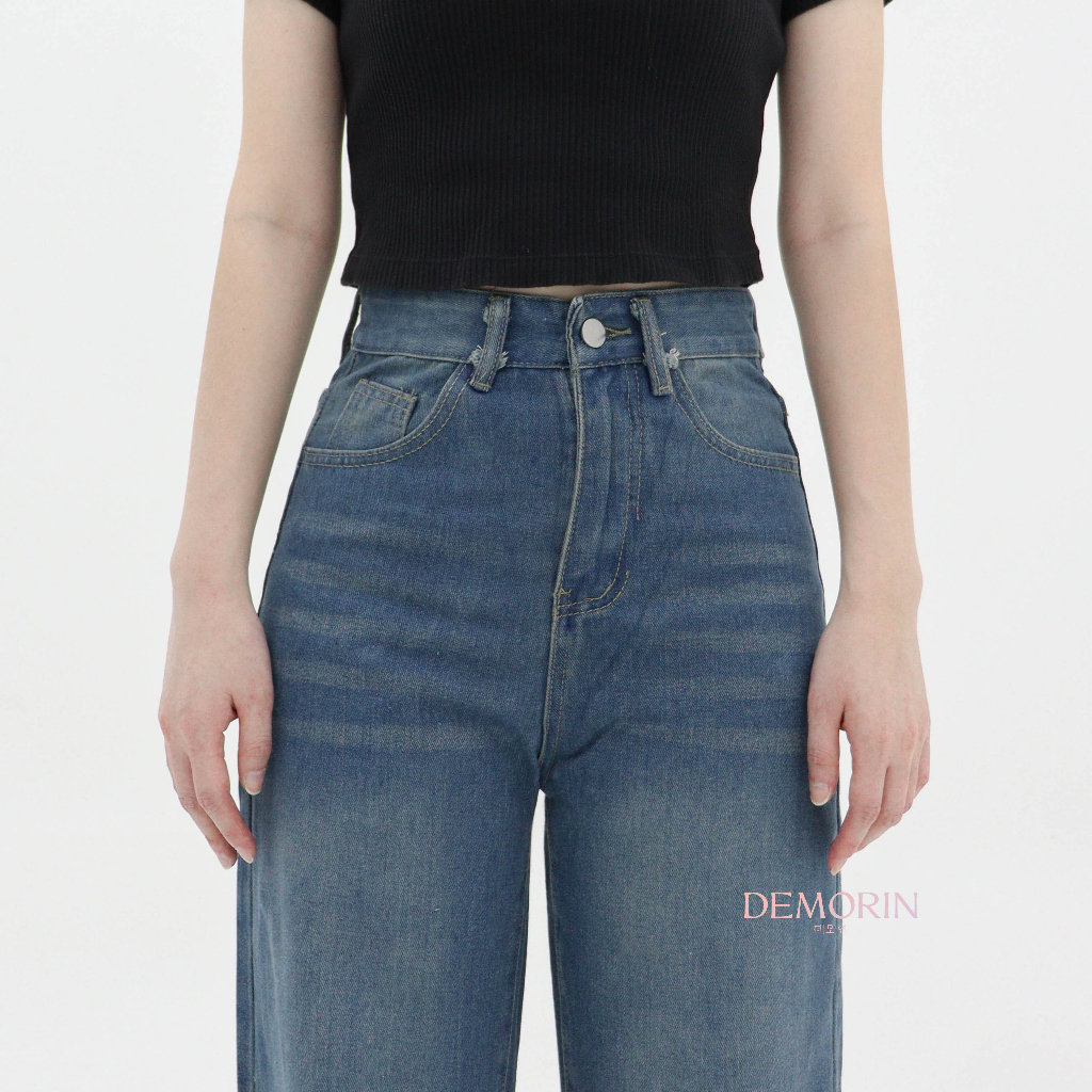 DEMORIN|Celana Panjang Jeans Wanita High Waist Loose Denim Baggy Cewek Retro Blue |X8125 – X8126|