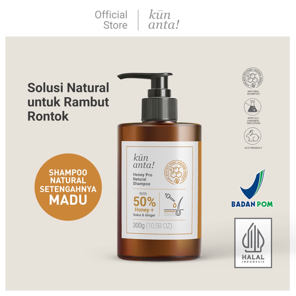 Shampoo Anti Rontok & Ketombe Natural Non Sls - Honey Pro 50 PERSEN Madu + Biotin, Kukui Oil & Ginger Oil