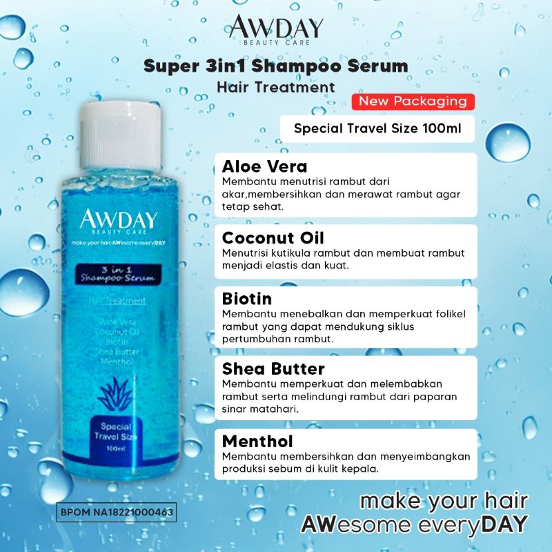Shampoo Awday Aloe Vera Travel Size / Shampoo Awday 100Ml / Shampoo Non Sls / Shampoo Awday Hijau / Shampo Awday Penumbu
