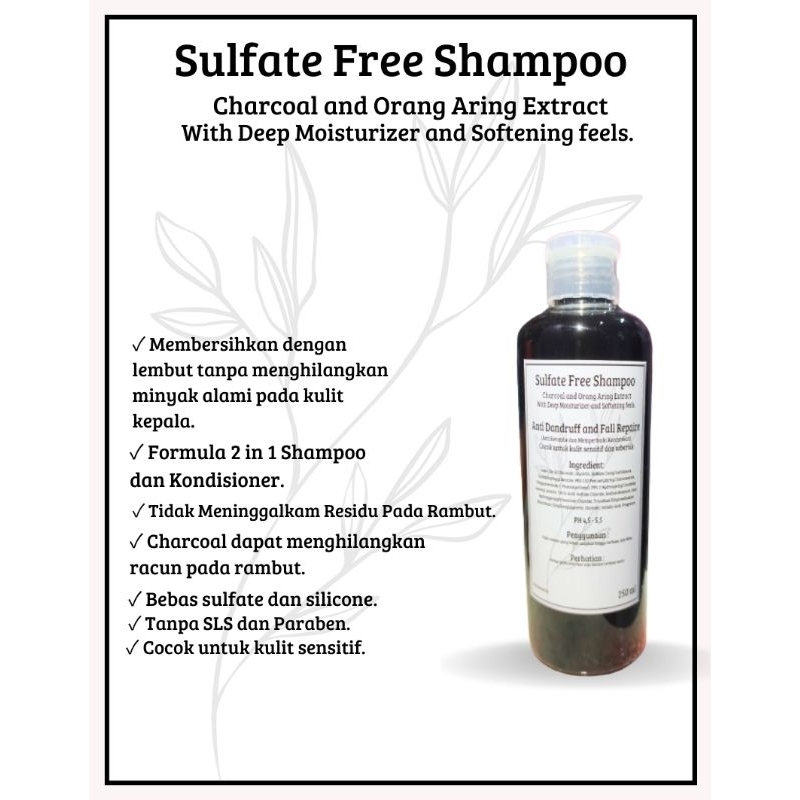 Shampoo Bebas Sulfat Tanpa Sls Dengan Kandungan Arang Aktif / Charcoal Isi 250 Ml