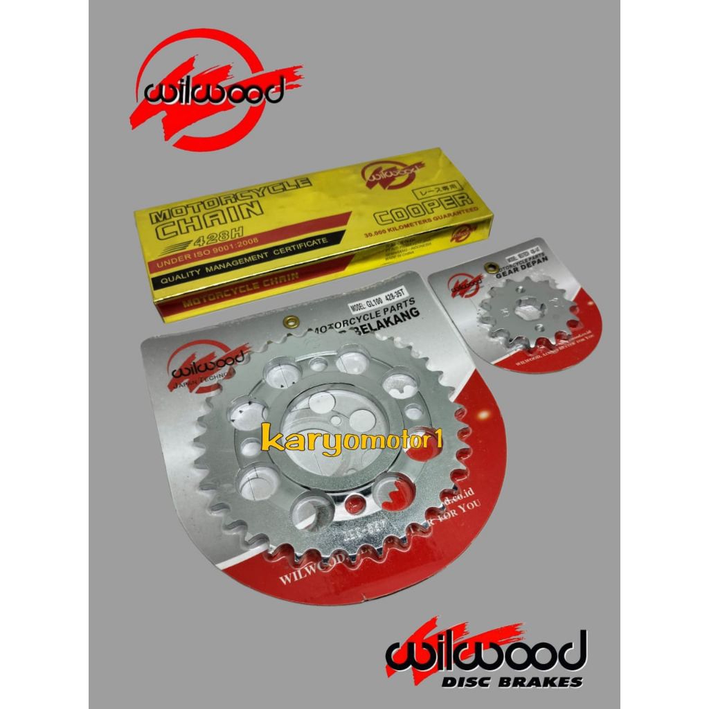 gear paket wilwood, gear depan + gear belakang + rantai gold gl pro, Megapro, Verza, Tiger, CBR 150R