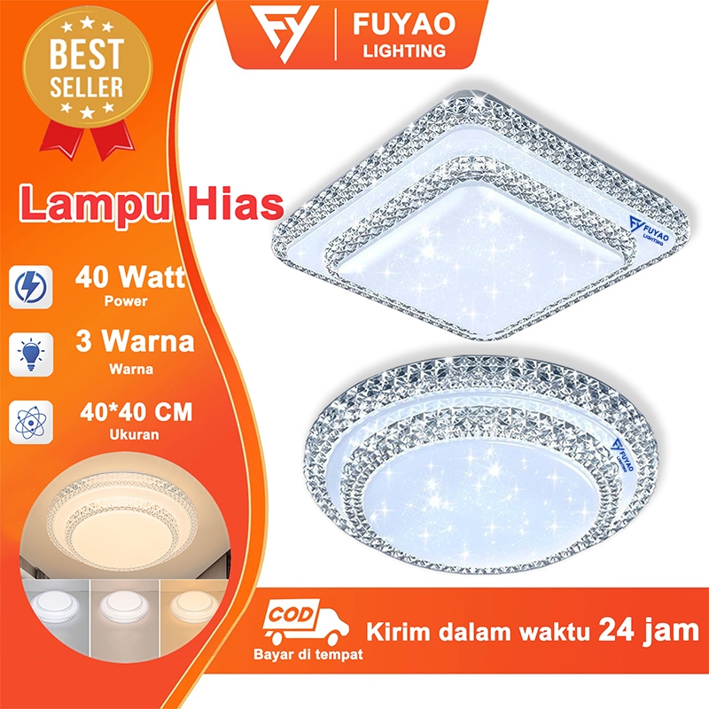 FUYAO LIGHTING Lampu Hias Plafon Kristal Estetik Modern dengan 3 Warna Cahaya
