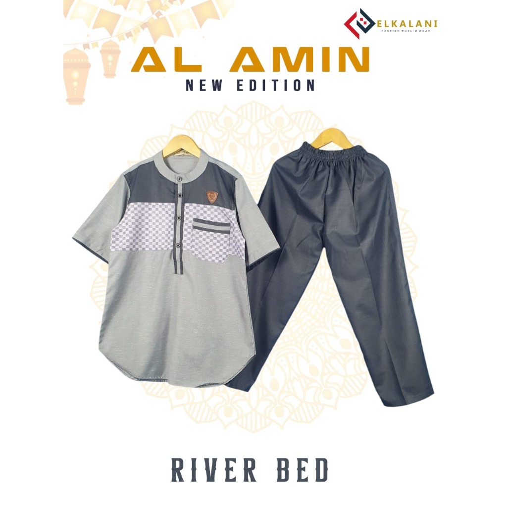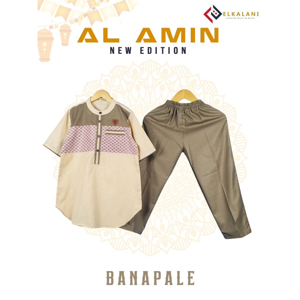 Elkalani - Kurta Al-Amin Baju Anak Koko Anak Kurta Anak Laki-Laki Setelan Kurta Anak Motif Lengan Pendek Usia 4-13 Tahun