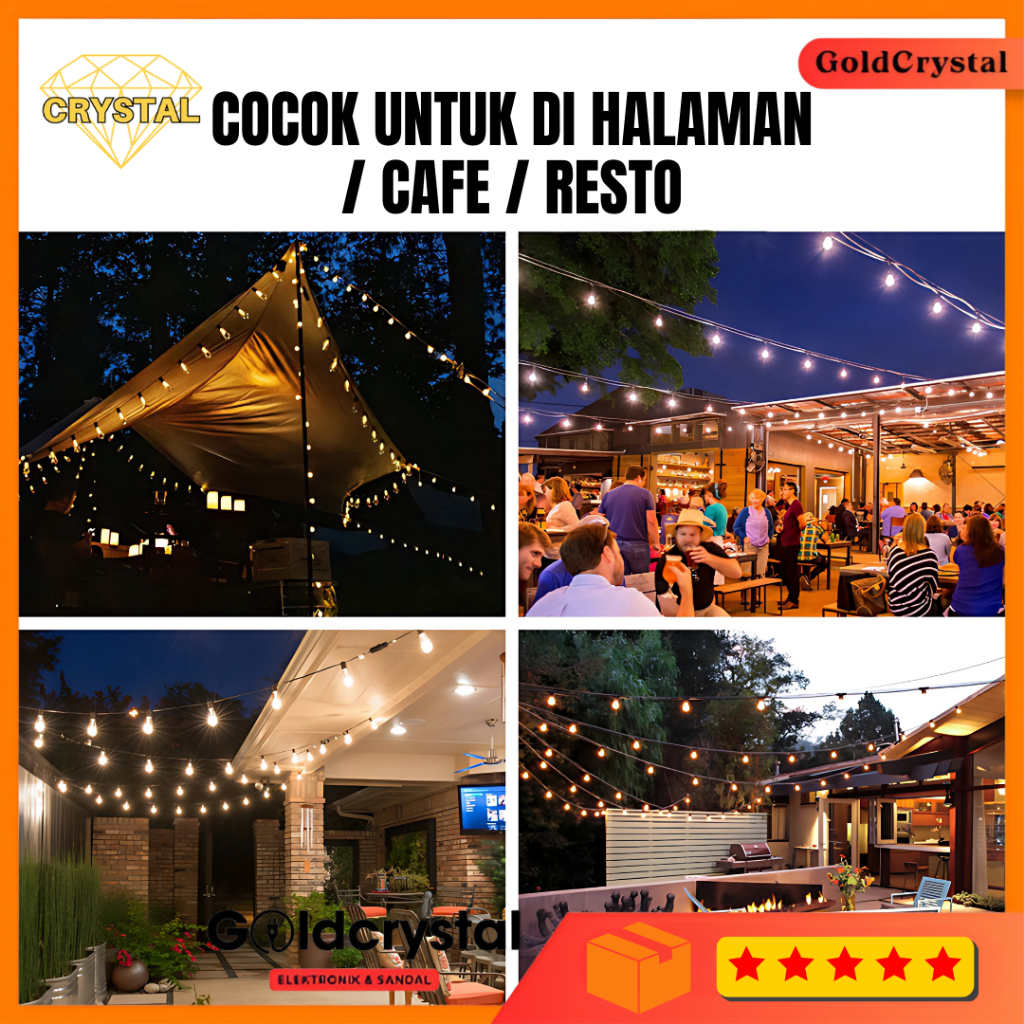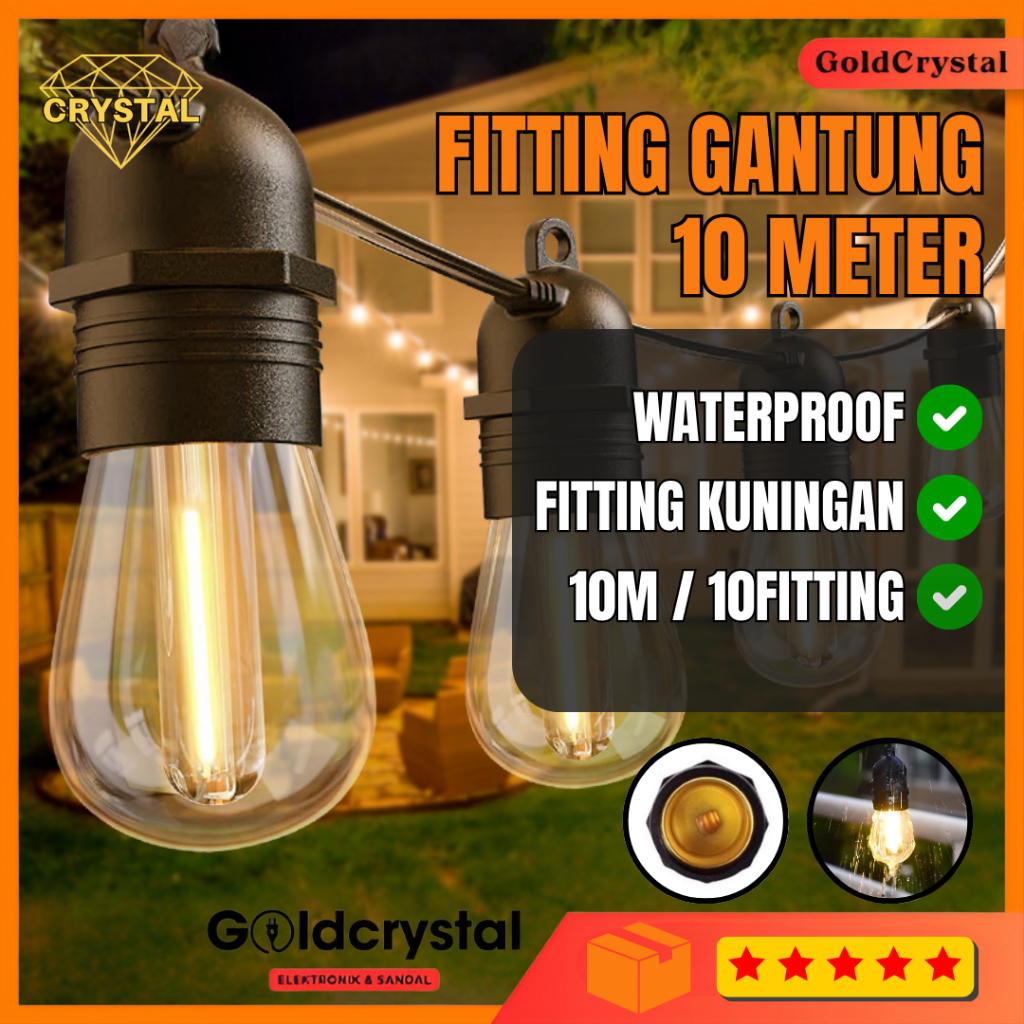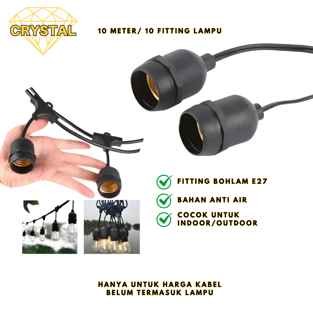 Kabel Fitting Lampu Cafe 10M/10Fitting Taman Gantung Dekorasi Outdoor Lampu Caffe/Hias