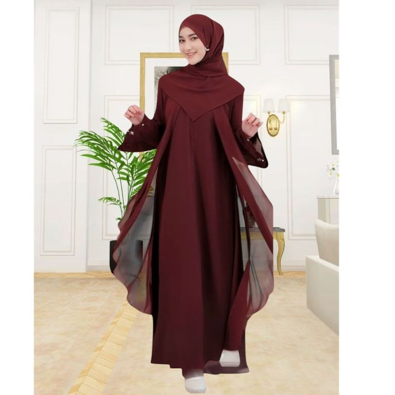 Gamis Abaya Layer Elegant Payet Premium Style Dubai Viral Hitam Lebaran 2026 Modeling Gamis Terbaru