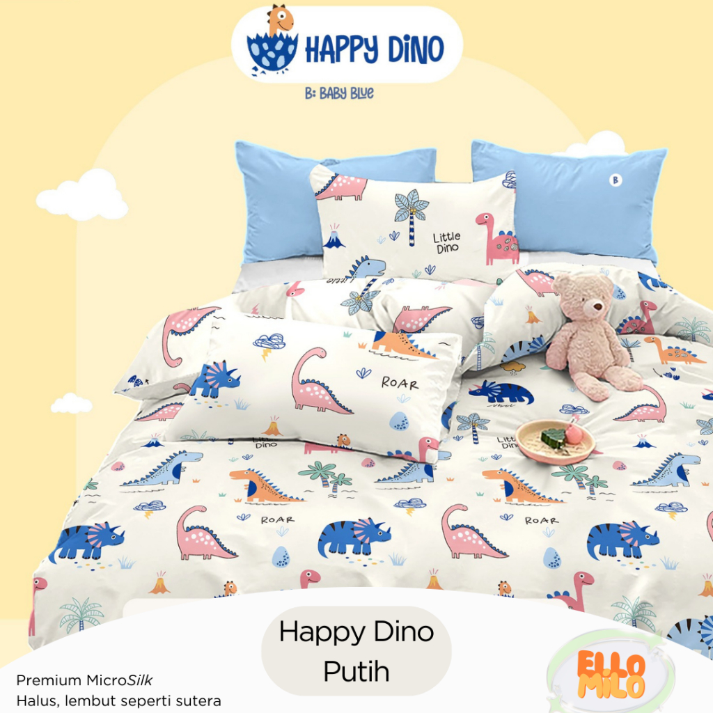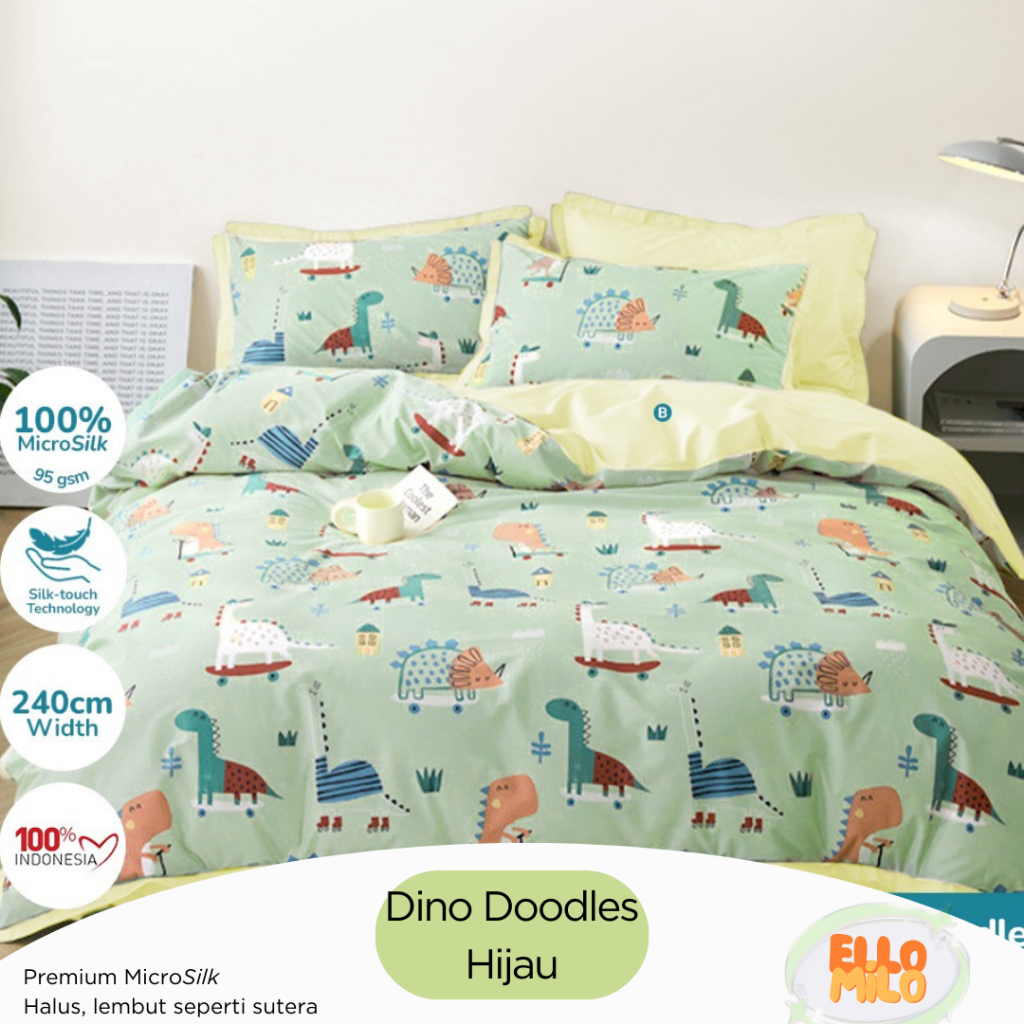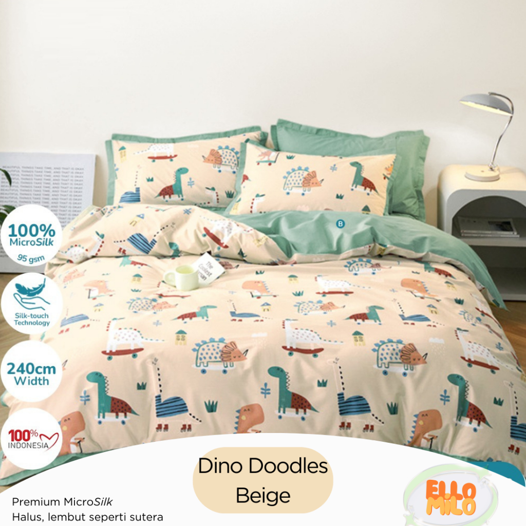 Sprei Set Dino | Katun Microsilk | Anti-GESER | 120x200 140x200 160x200 180x200 | Sprei Korea