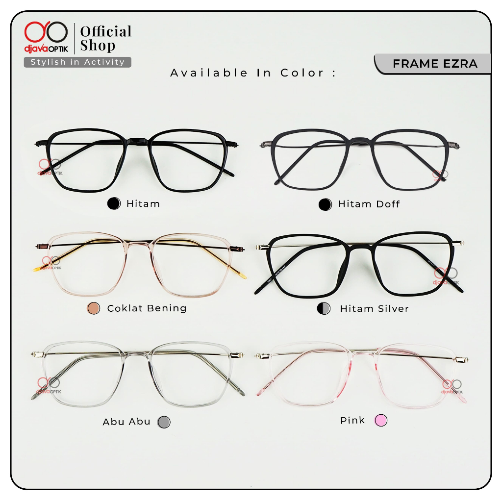DJAVA OPTIK - FRAME EZRA - KACAMATA KOREA KOTAK LENTUR KHUSUS MINUS -4,25 S/D -6,00
