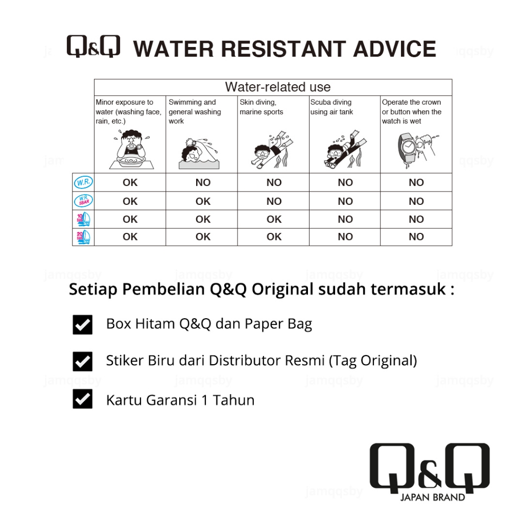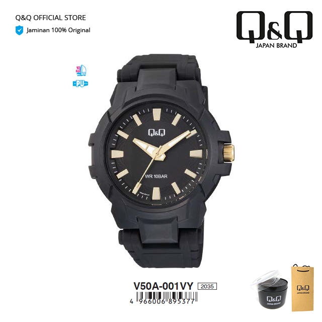 Q&Q QnQ QQ Jam Tangan Analog Uni Arloji Casual Fashion Strap Resin - V50 V50A Water Resist 10 BAR Tahan Air