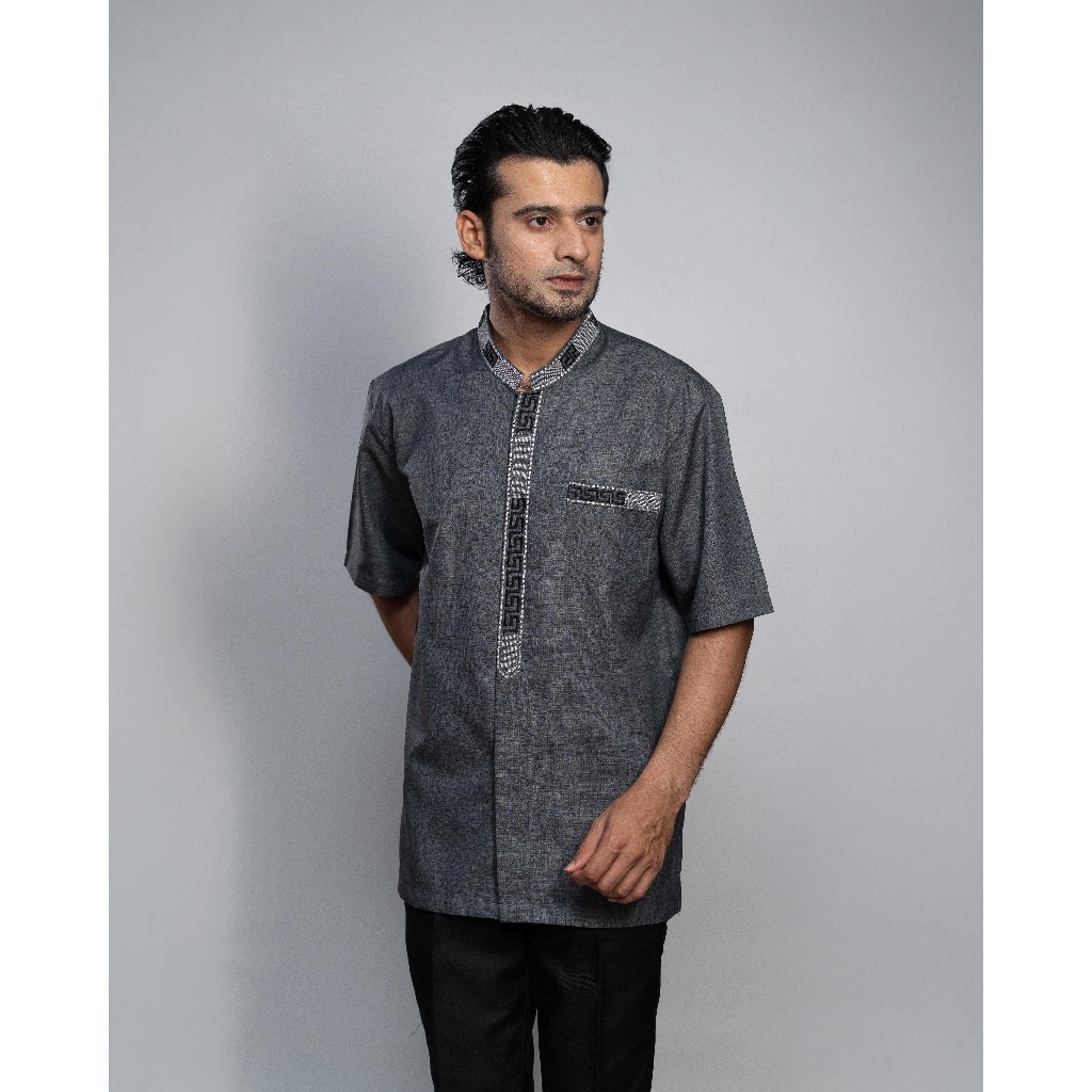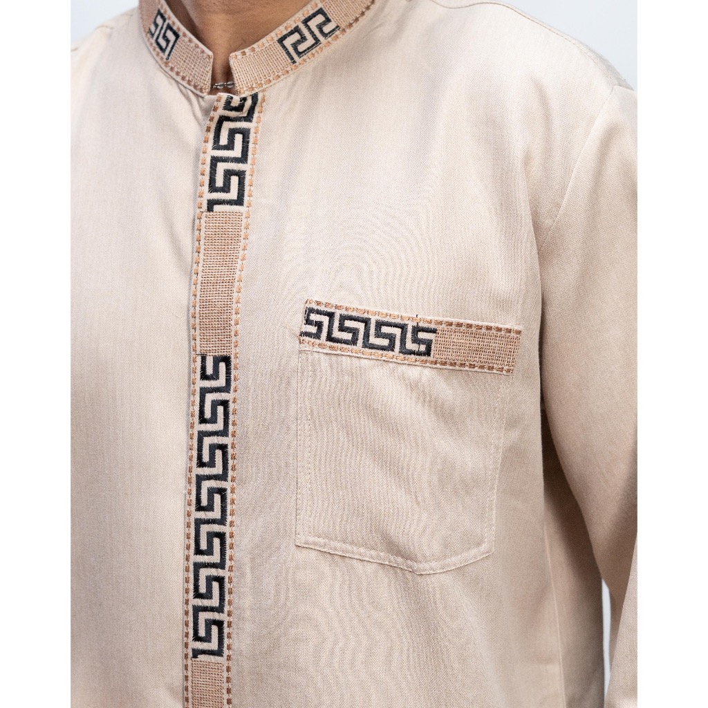 Baju Koko Pria Dewasa Motif Bordir Lengan Panjang Bahan Katun Madinah Premium Muslim Nyaman Motif