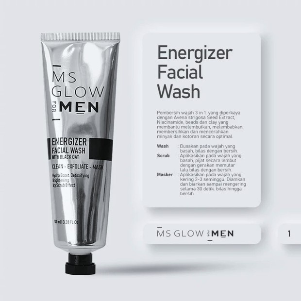 MS Glow Men Energizer Facial Wash + Sunscreen Spray - MS GLOW FOR MEN Skincare Pria DISKON