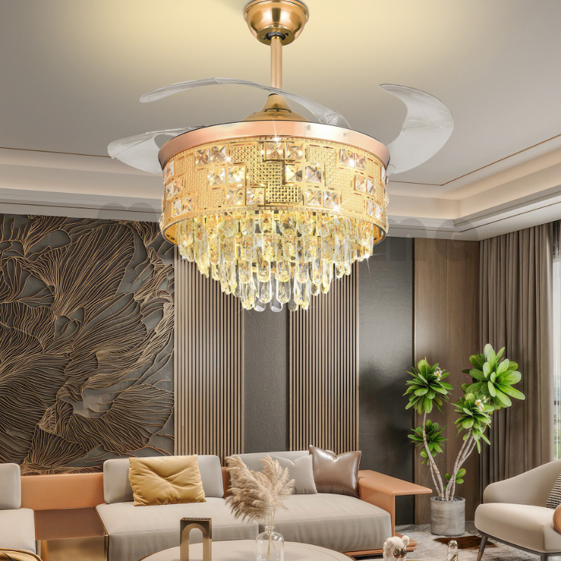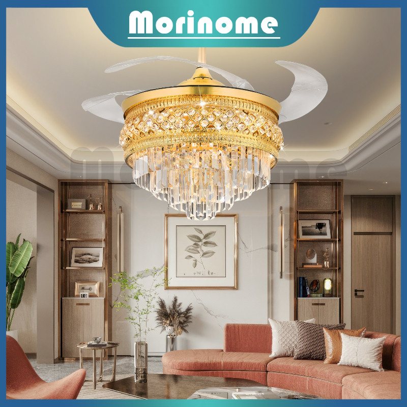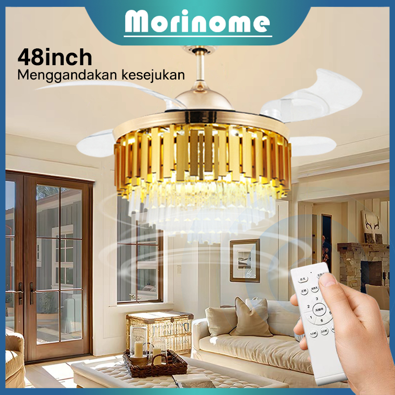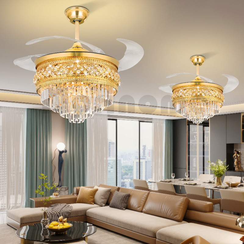 Kipas Angin Gantung Plafon 100 PERSEN Kristal&Remote&42/48inch 4 ABS Fan Gold Crystal Chandelier 2IN1 Meja Makan Ruang Tamu Ruang Makan Kamar Tidur Lampu Kipas Kristal Mewah Modern ysh