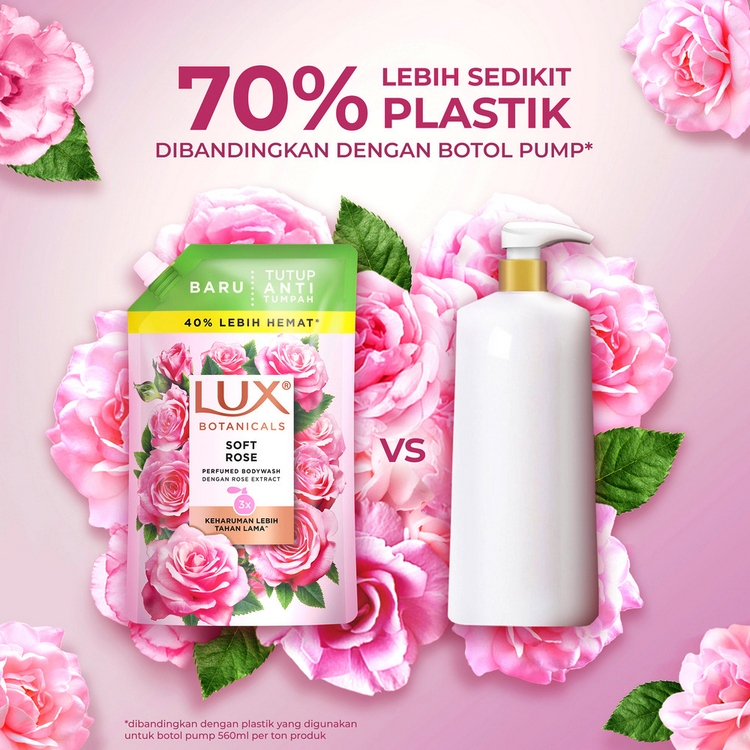 Lux Botanicals Body Wash Refill Soft Rose Kulit Lembut 800ml