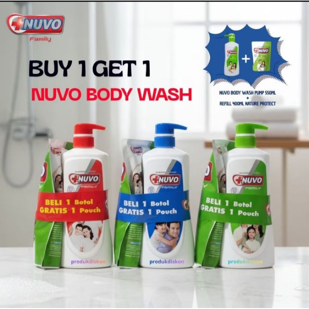 NUVO Family Anti Bacterial Body Wash PUMP 550ml Bended 450ml