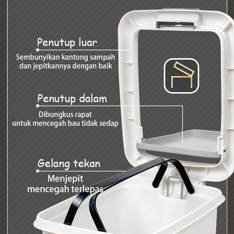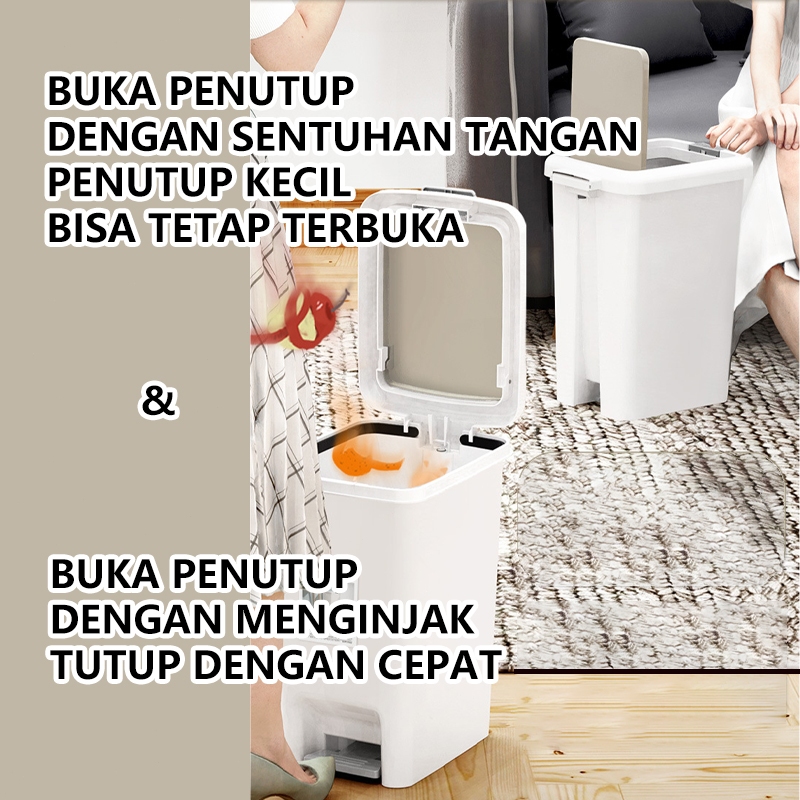 Tempat Sampah Injak Besar Aesthetic 15/20Liter Tong Kotak Rak Mini Kamar Mandi Tidur Dapur Kecil