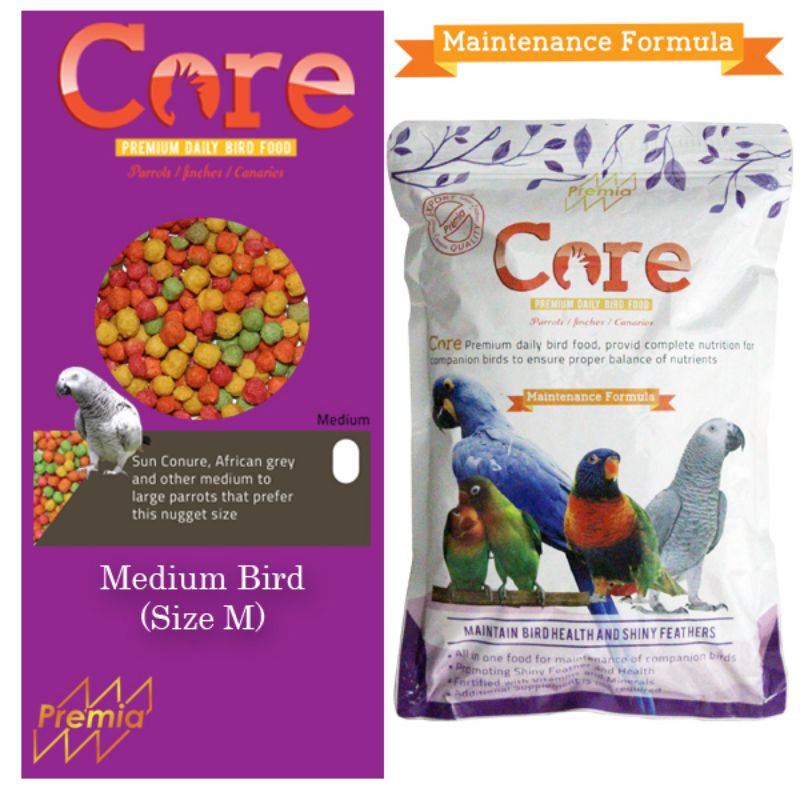 Premia Core Parrot size M 800g pakan burung premium harian. (Afgrey)