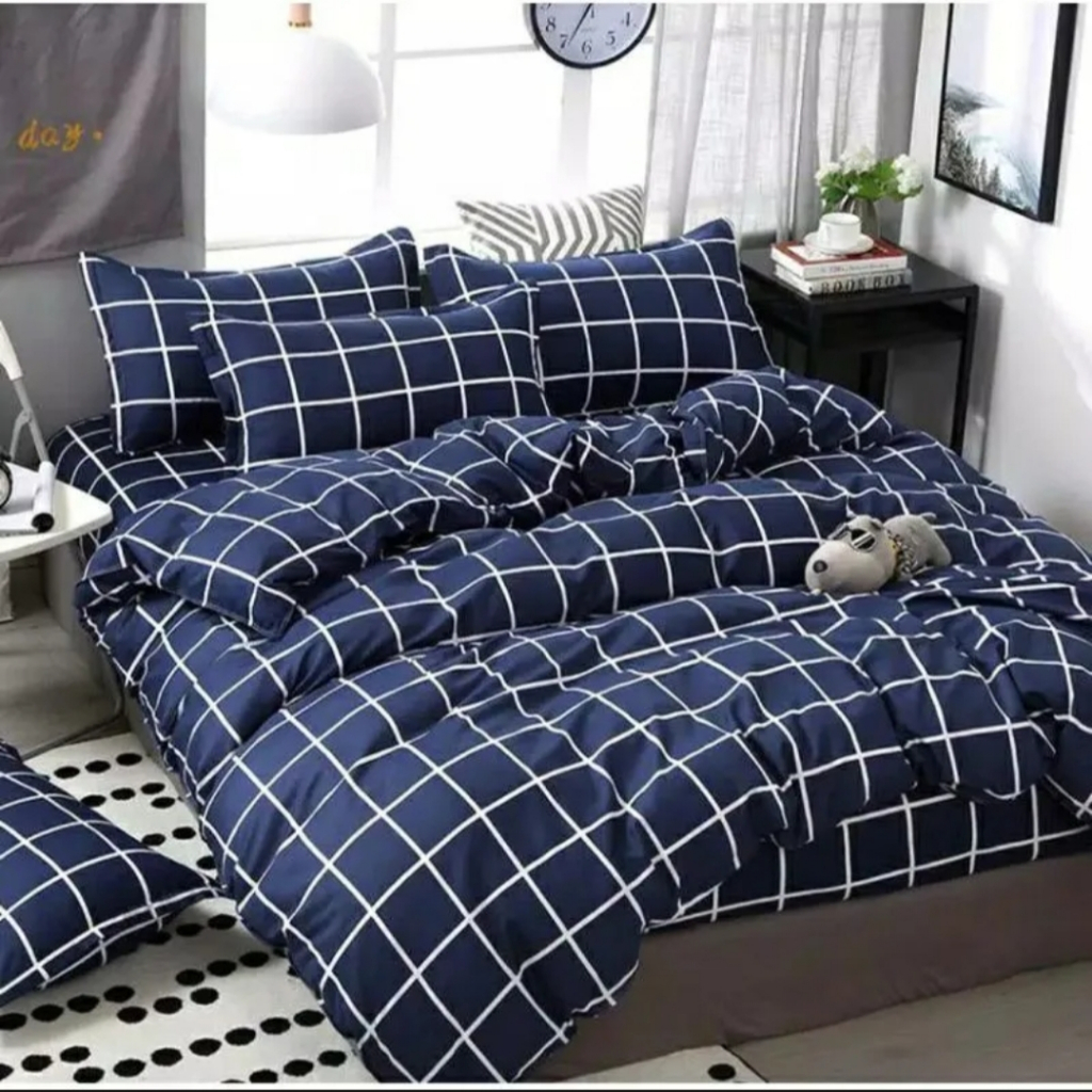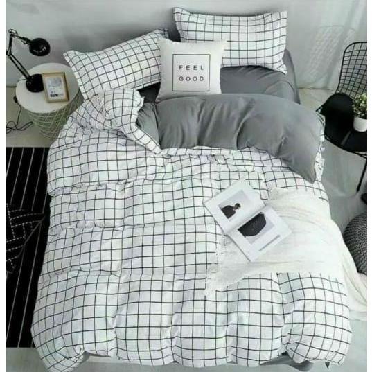 Sprei terlaris motif aesthetic kotak hitam putih uk King/Queen/Double 180x200 160x200 120x200