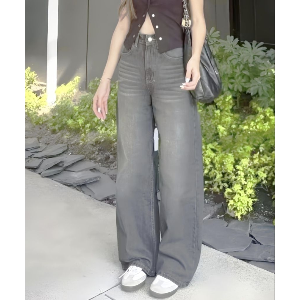 JEANS KULOT SKENA GREY JUMBO Plus Size Jeans Wanita Panjang 102-103 Cm, Size : 31-42, STRETCH / Melar