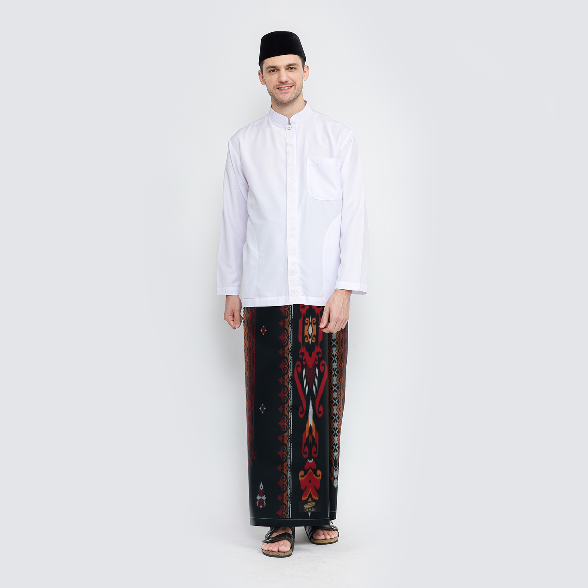Sarung ATLAS Idaman 555 Kembang Motif BHS A5 JLD Hitam Merah