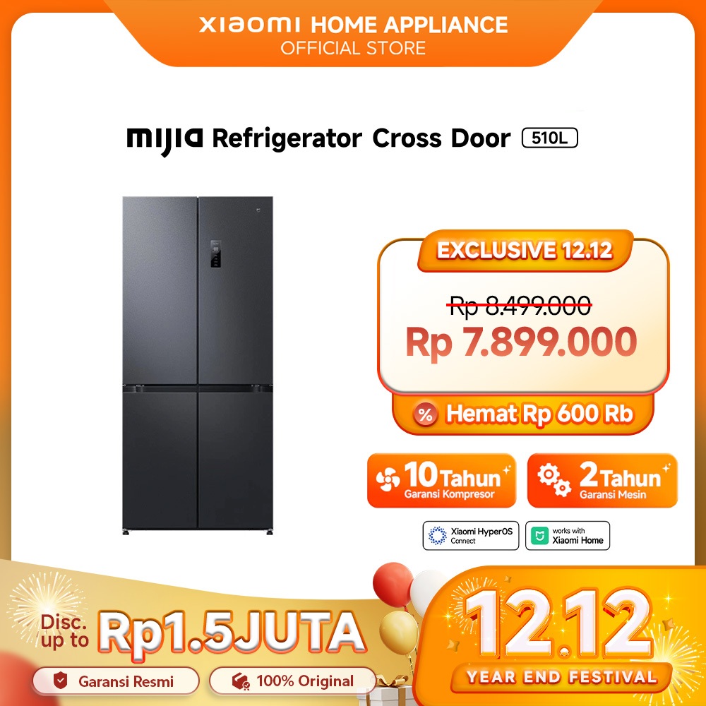 Xiaomi Mijia Refrigerator Cross Door 510L | Smart Control | 510L Big Capacity & Ultra-Slim Design | Ag+ Fresh : Anti-bac