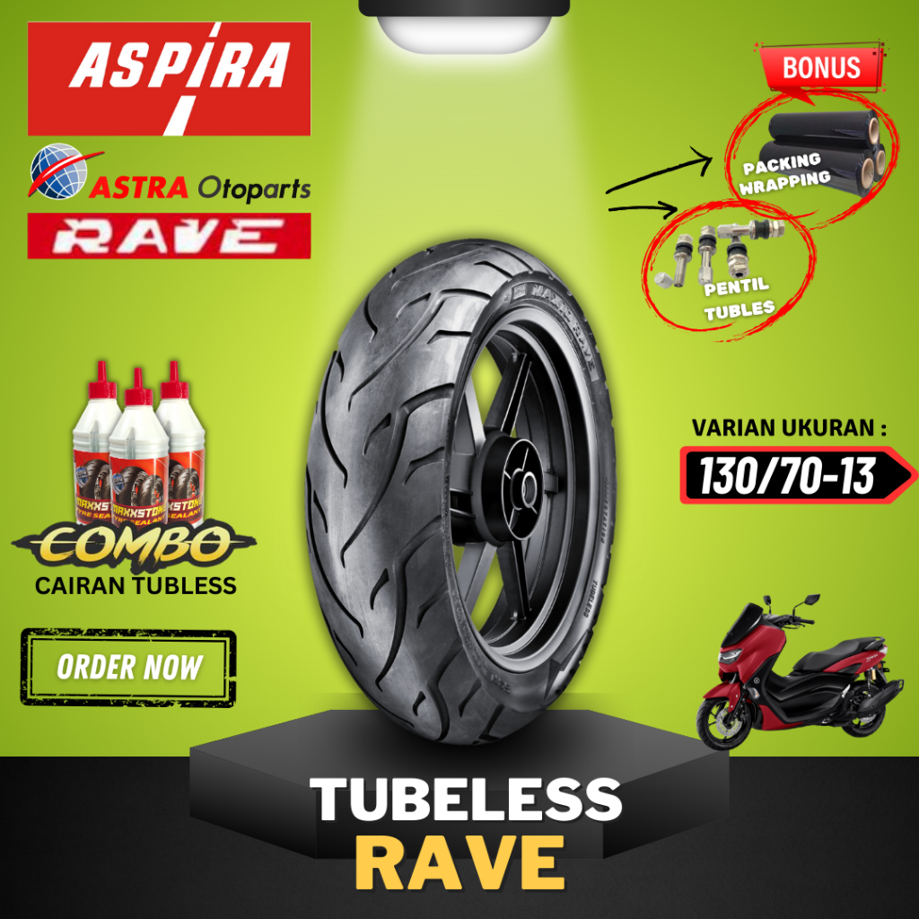 [PAKET SEPASANG MURAH] BAN ASPIRA TUBELESS MAXIO RAVE RING 13 110/70-13 & 130/70-13 / BAN LUAR NMAX RING 13 ( 110/70-13